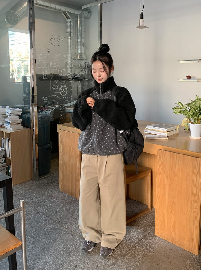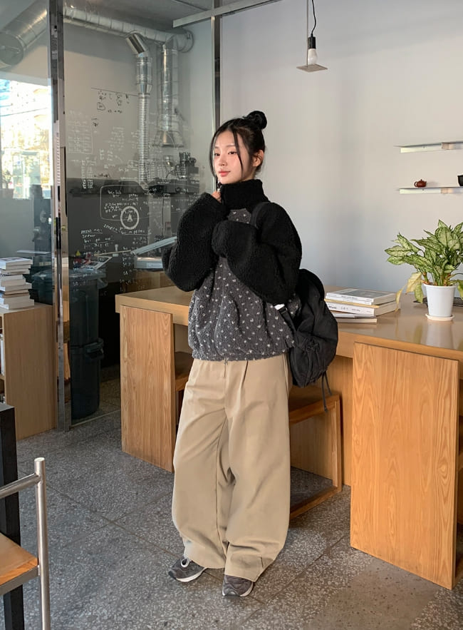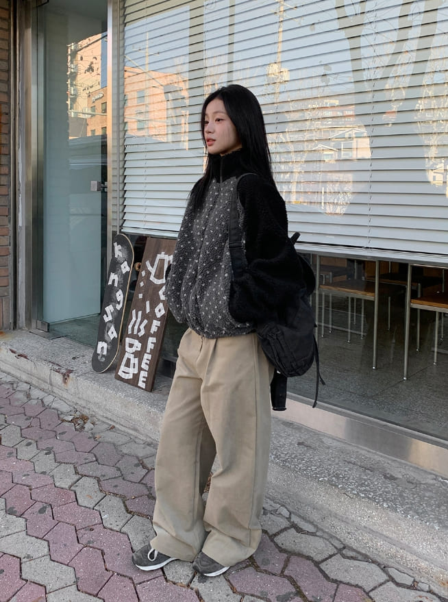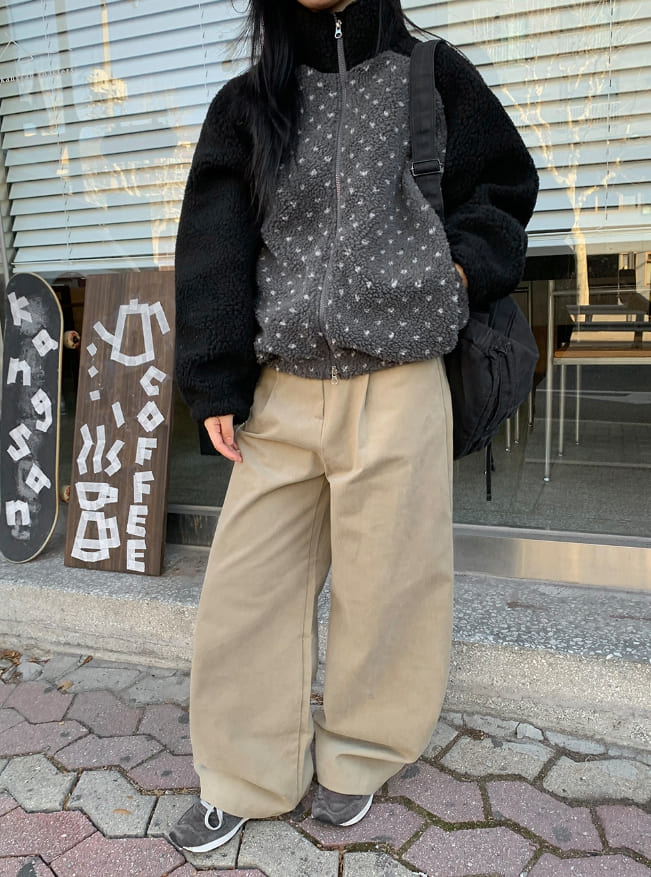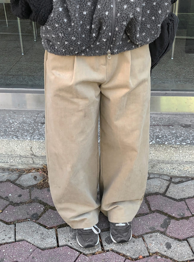 ハンポピンタックピーチ起毛ファズワイドパンツ