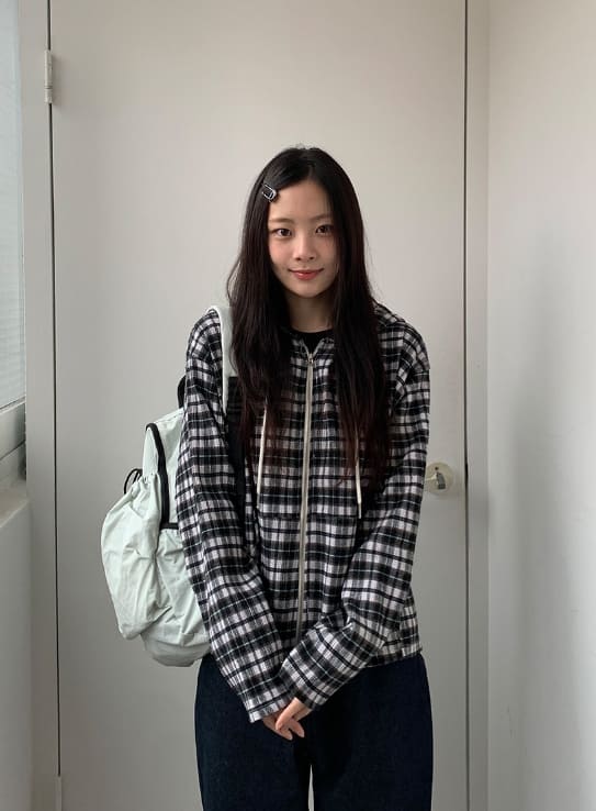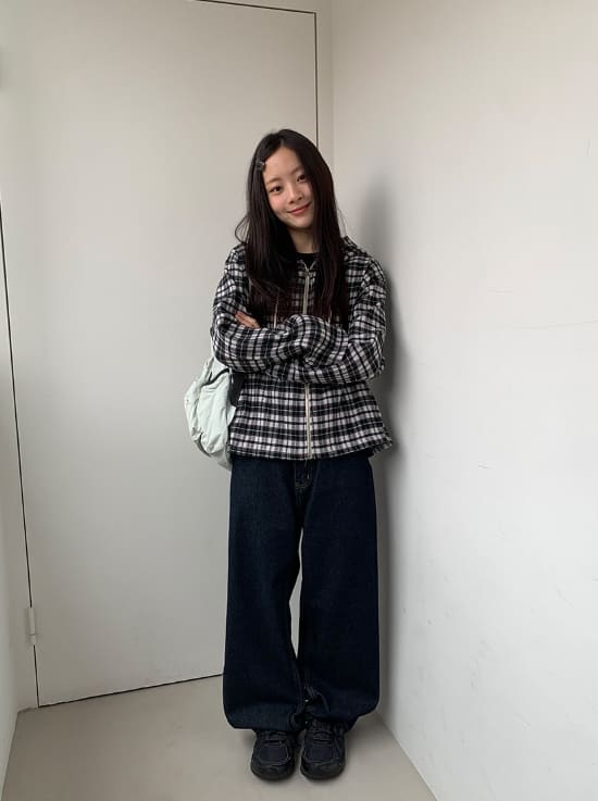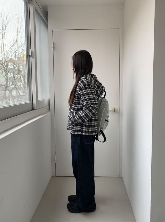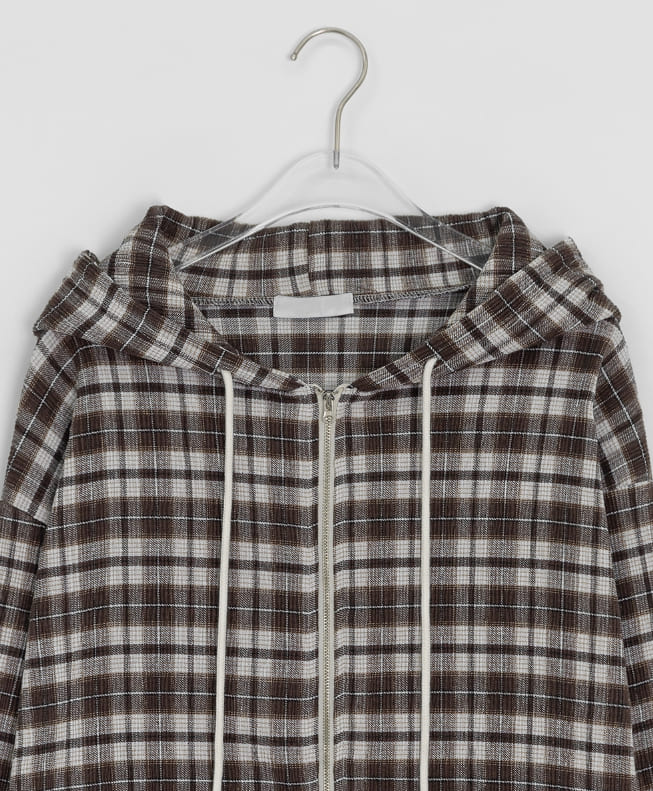 ハーマンヌチェックオーバーフードジップアップジャンパー