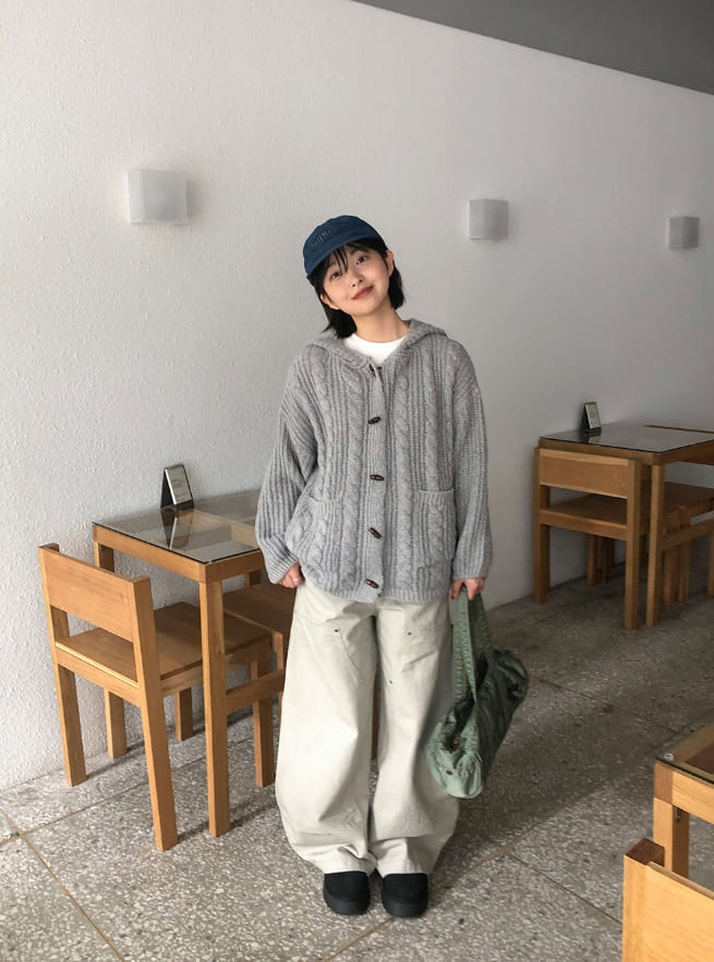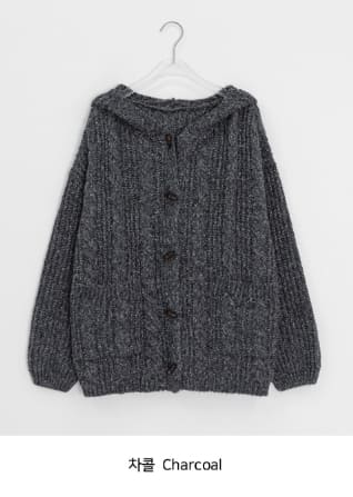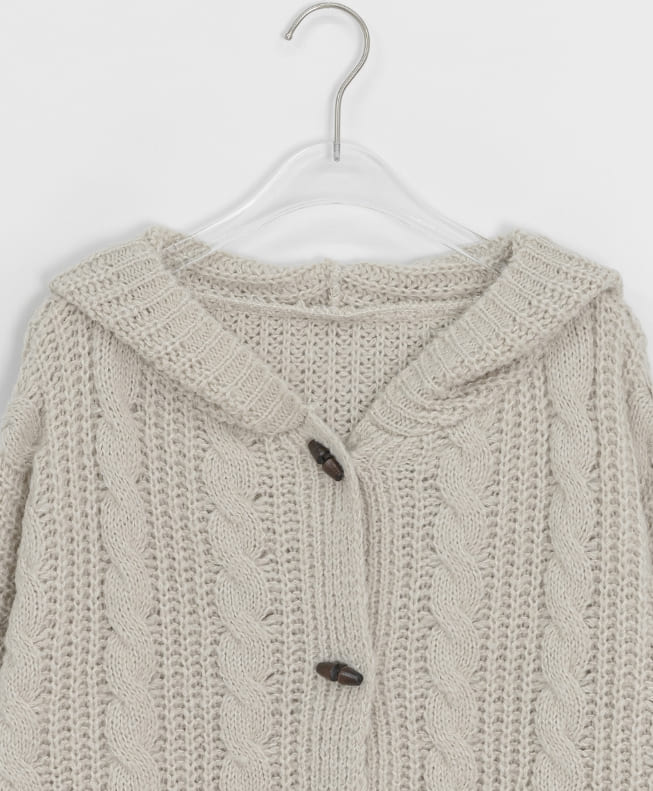 ヘトロケーブルフードニットカーディガン