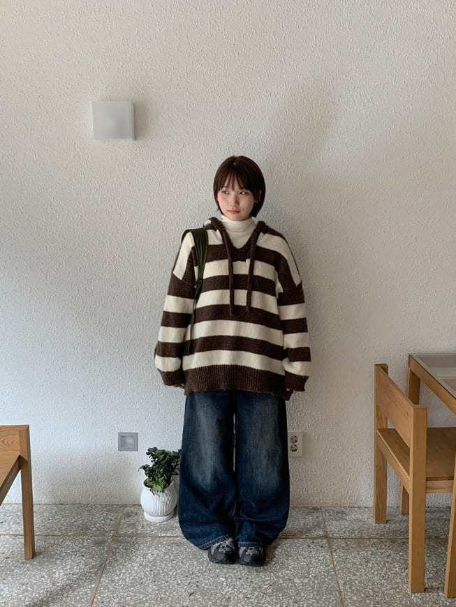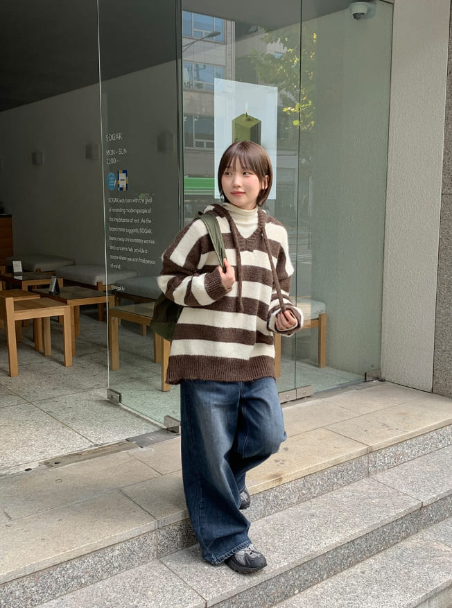 Hibonne brushed denim wide pants