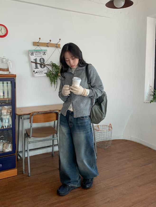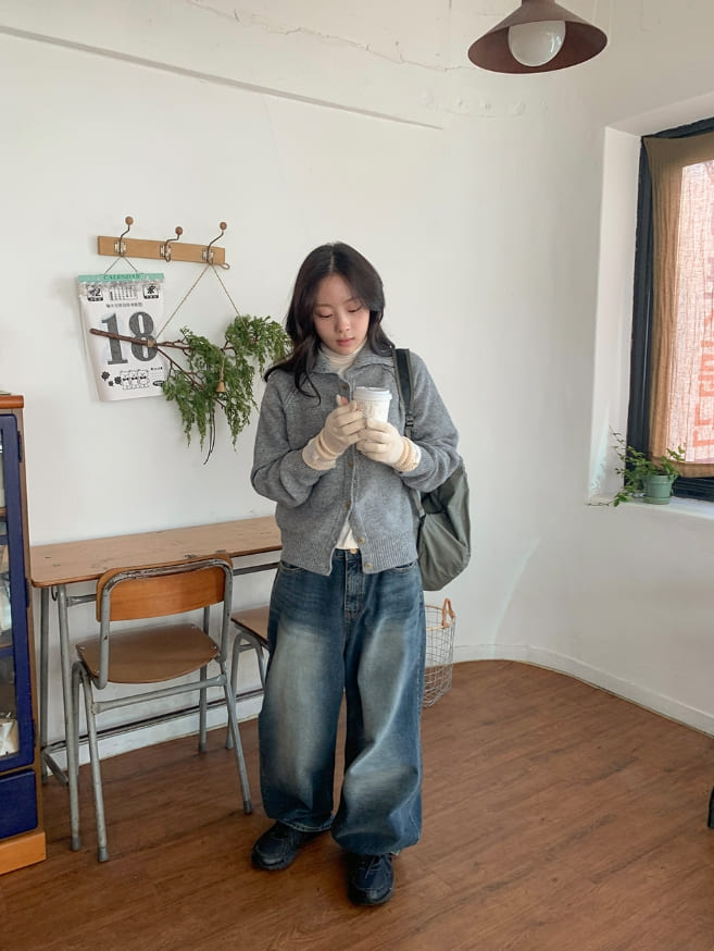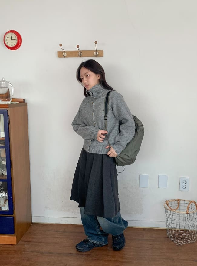 Hideout Raglan High Neck Knit Cardigan