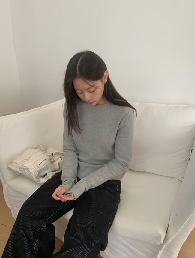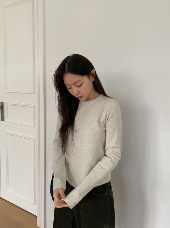 ヒゲットピーチ起毛カラーベーシック長袖Tシャツ