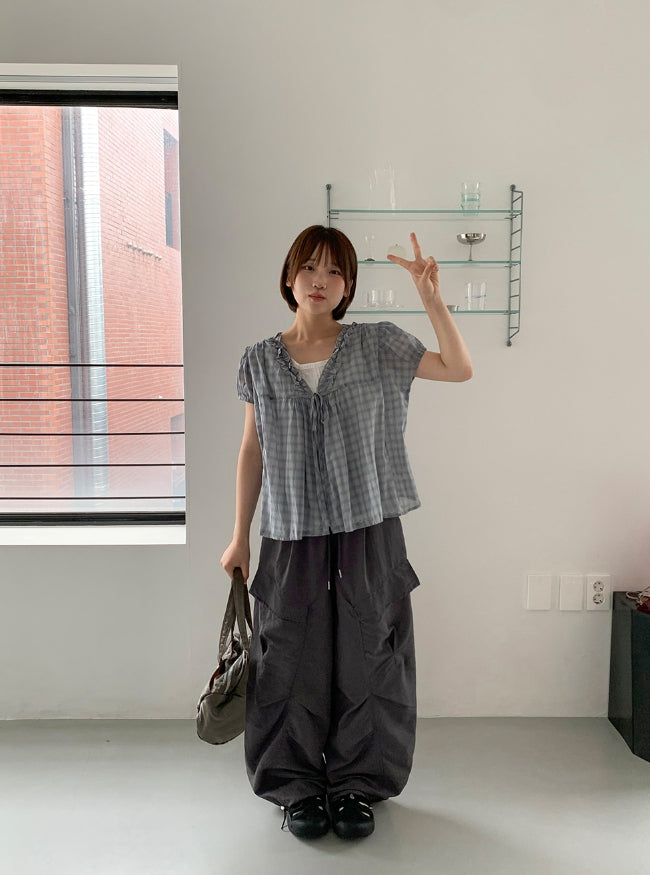 -ONE SIZE (ウエスト(ゴム)63-75 ヒップ104 股上31 股下73 もも周り68 裾周り54 総丈104)