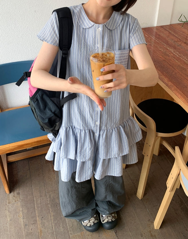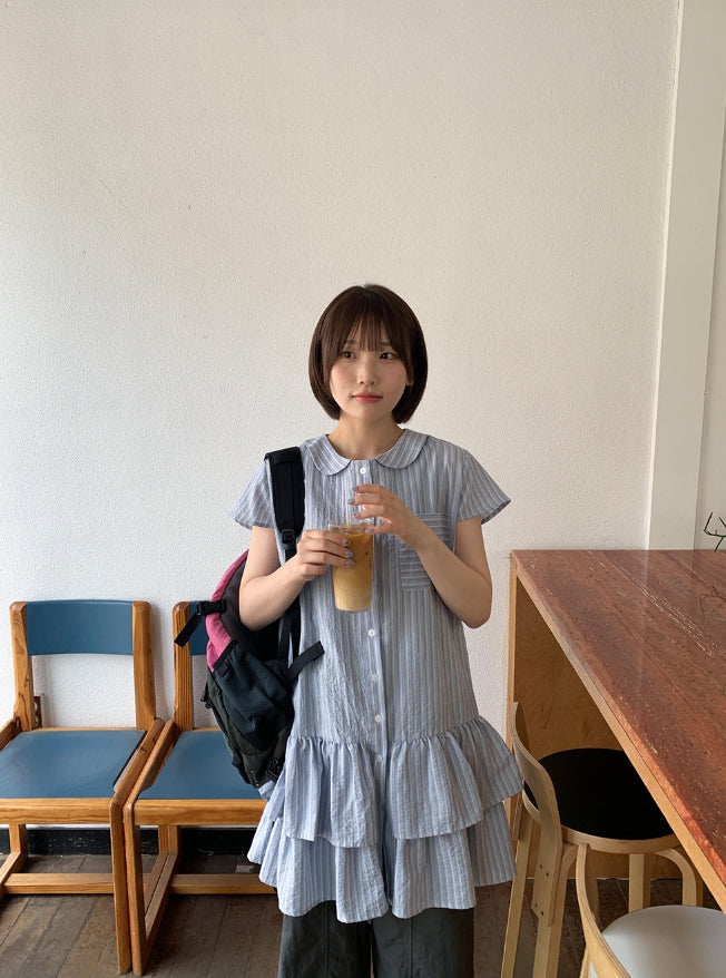 Hudum Striped Layered Shirt One Piece