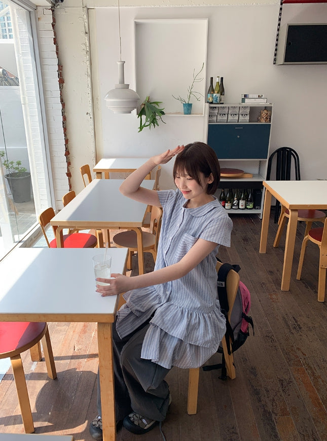 ハドゥムストライプレイヤードシャツワンピース