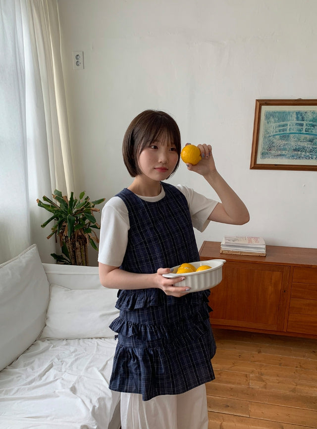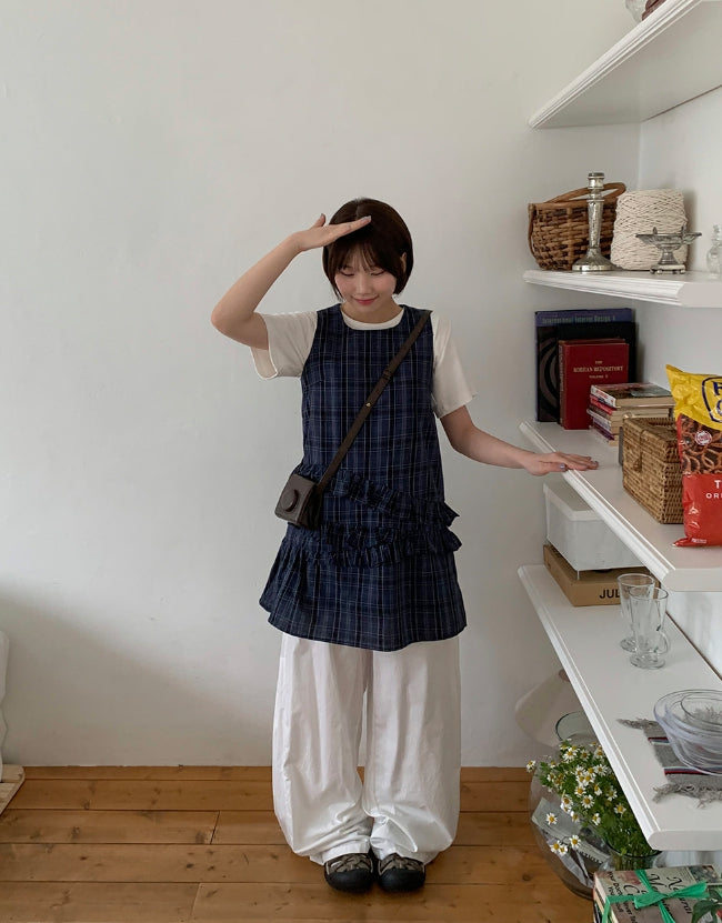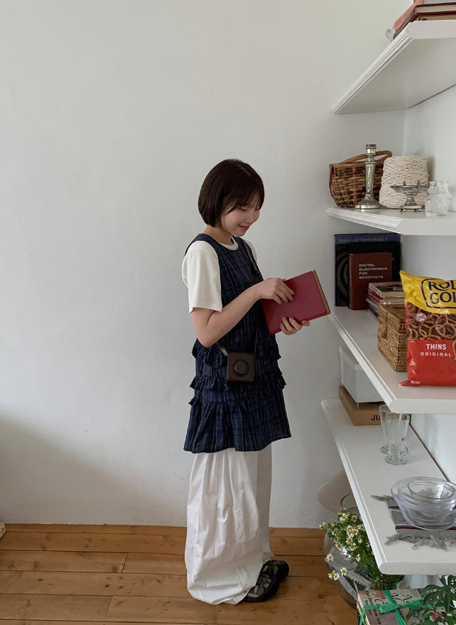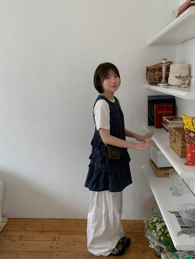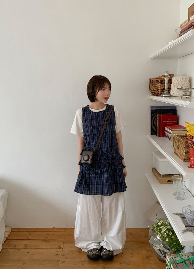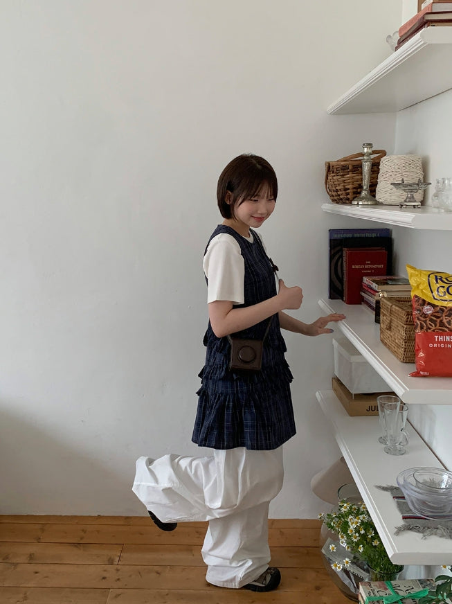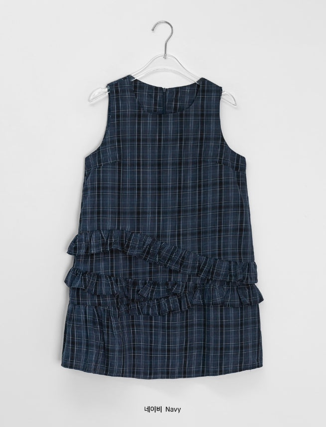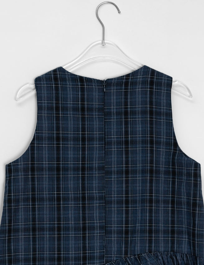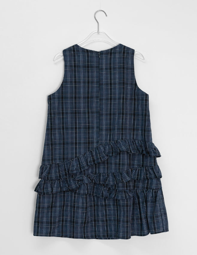 ハットルチェックティアードレイヤードノースリーブワンピース
