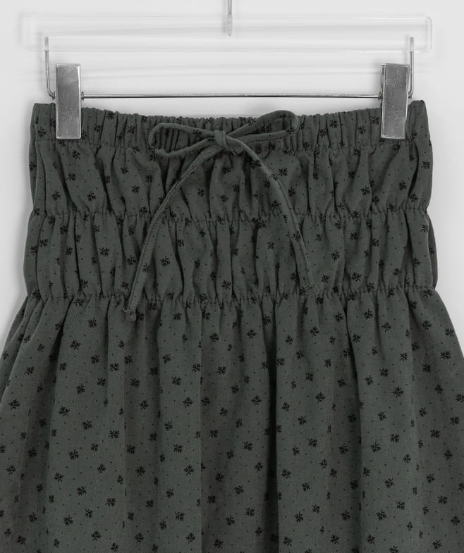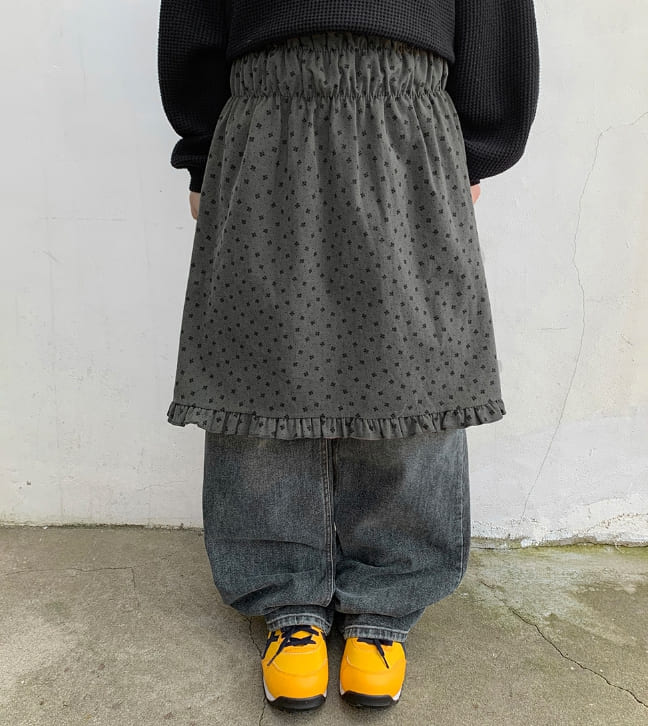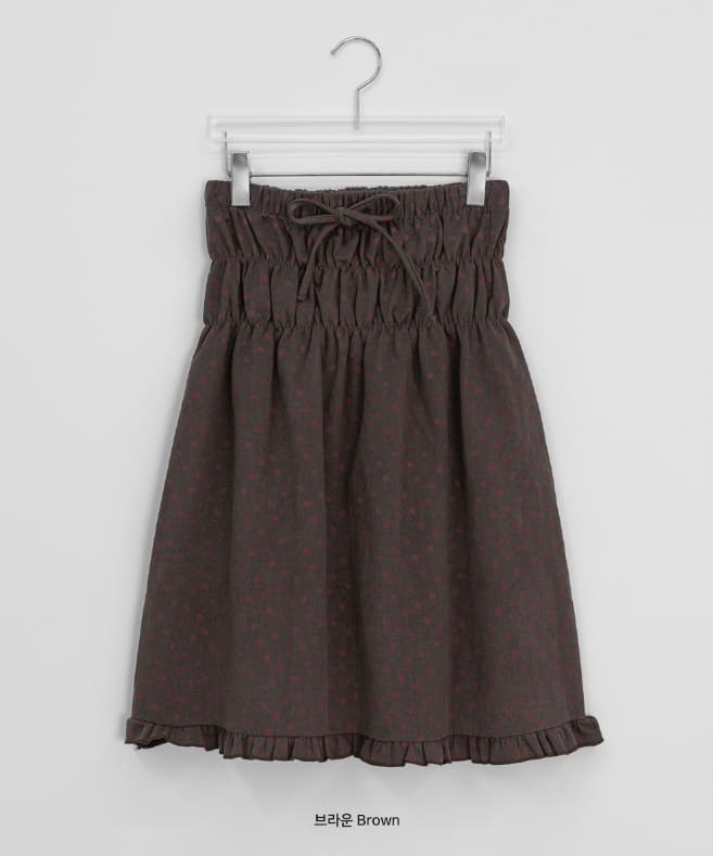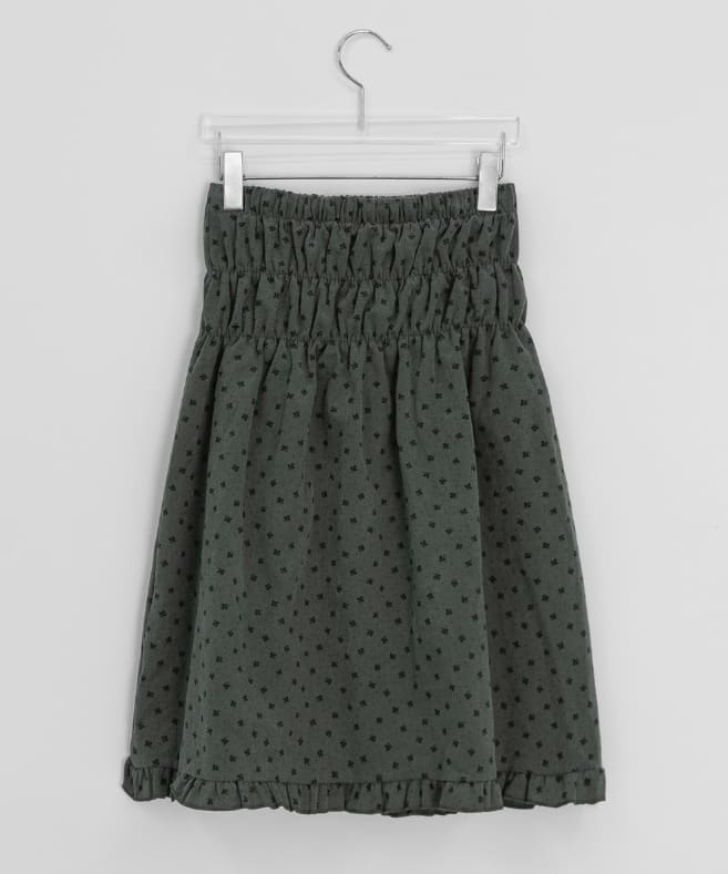 イッパーフラワーバンディングピーチ起毛フリルミディスカート