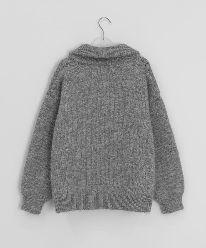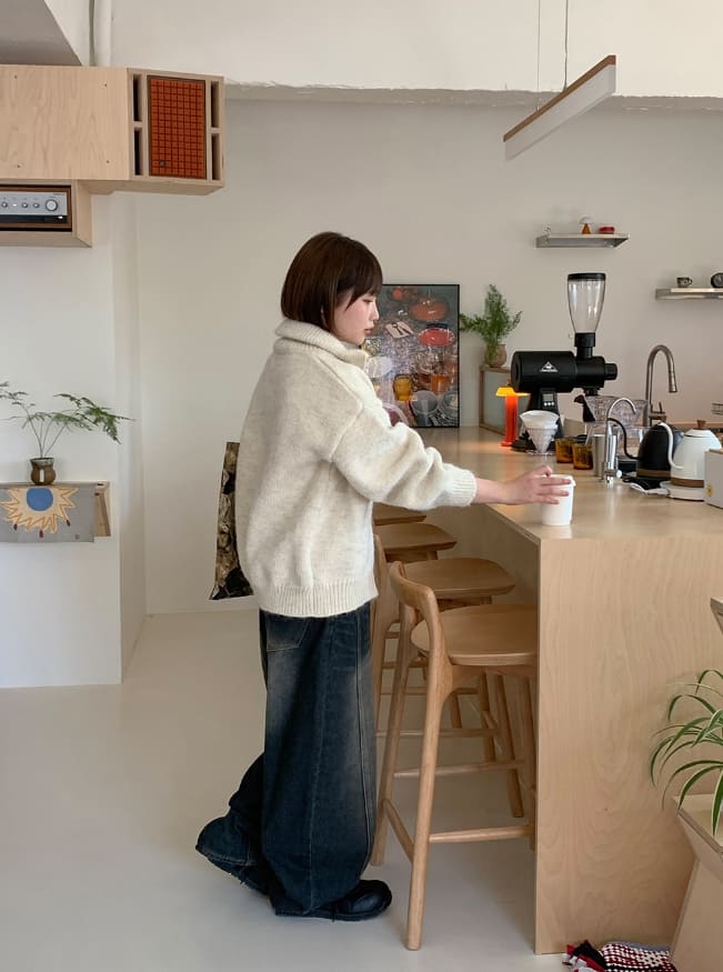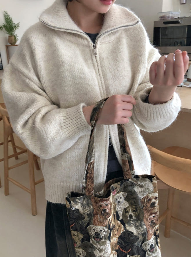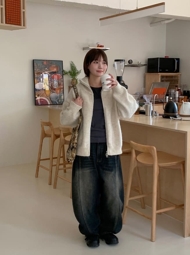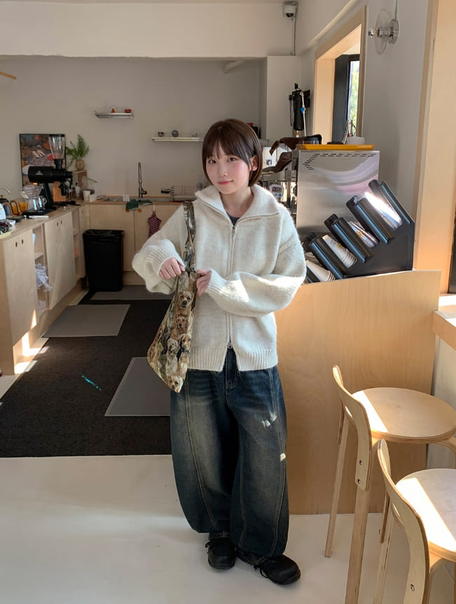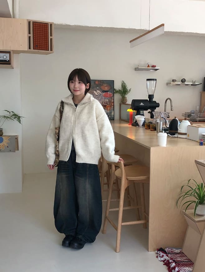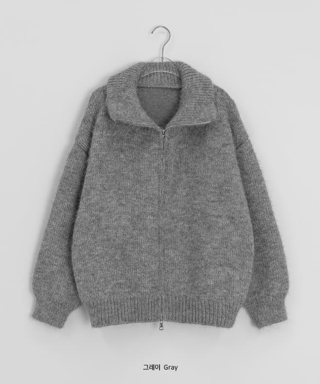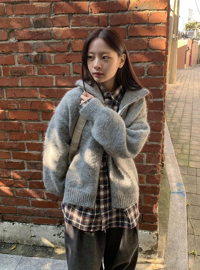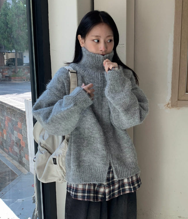 Jingb High Neck Wool Knit Zip-Up Cardigan