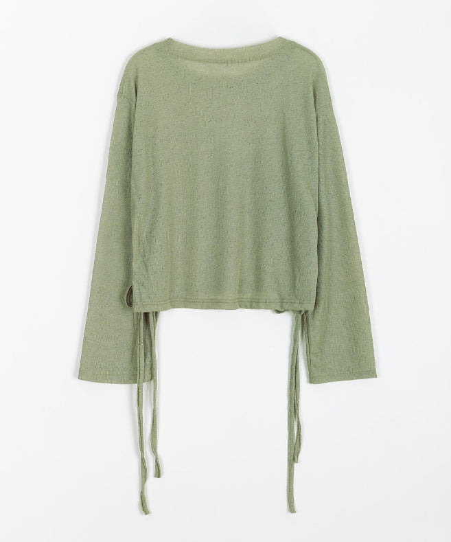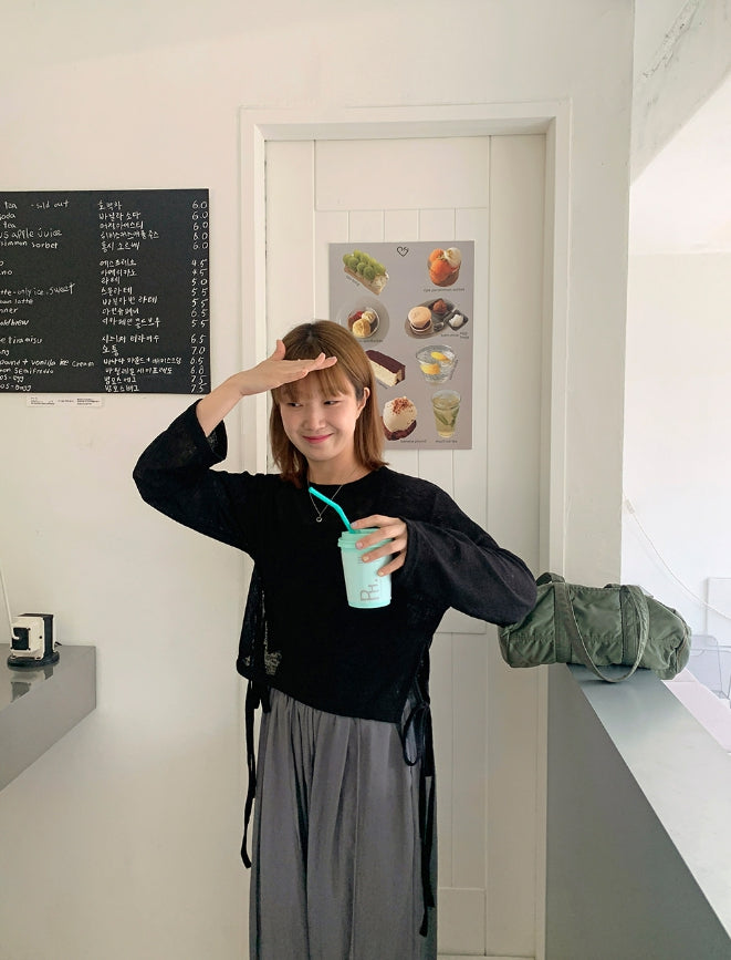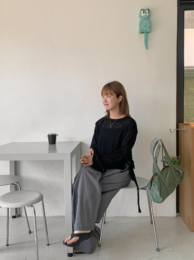 Jorit See-Through Strap Ribbon Long Sleeve Tee