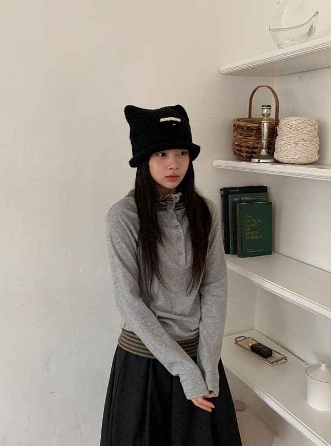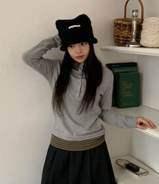 Kahome Peach Fuzz Stripe Layered Hoodie