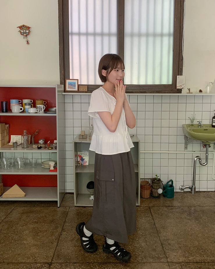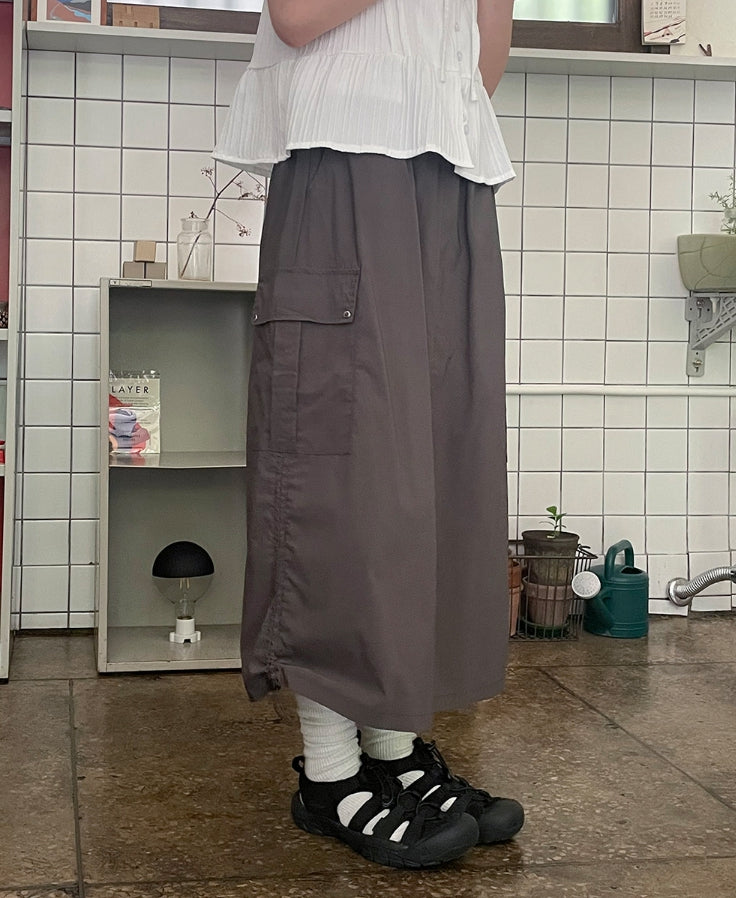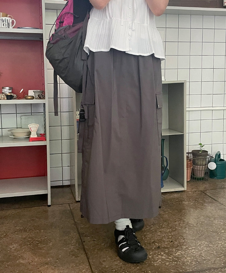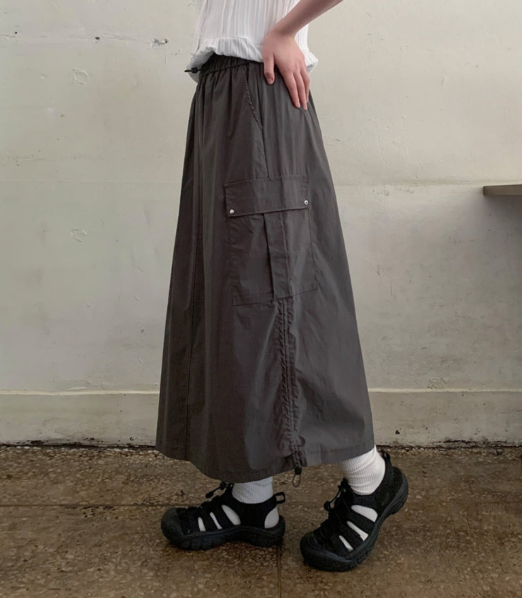 Kebu Nylon Cargo Banding Long Skirt