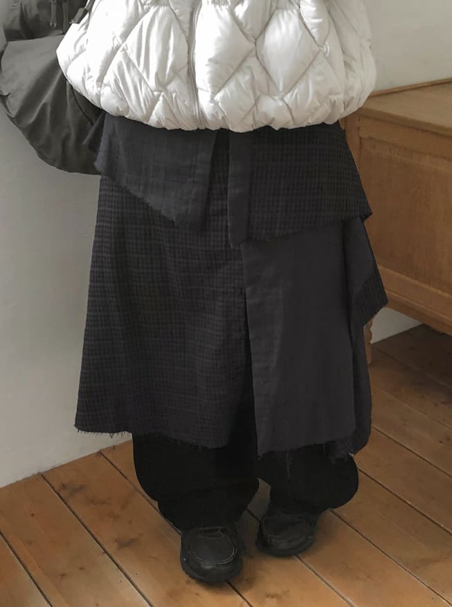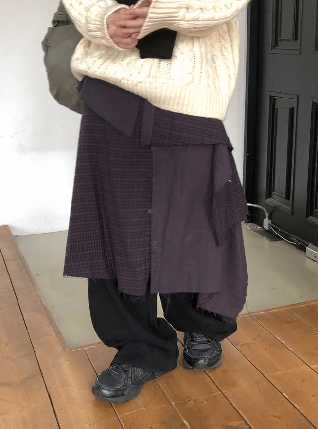 ケルホルチェックボタンレイヤードスカート