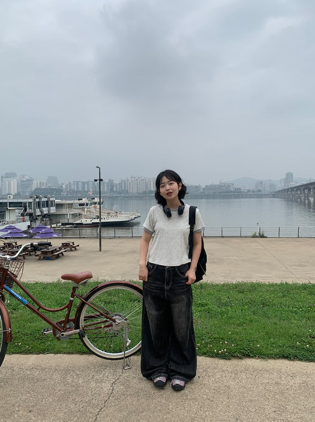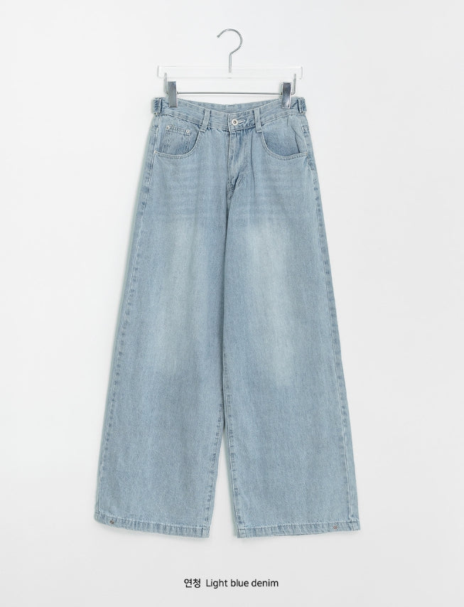 ケシュサマーウォッシュ加工デニムワイドパンツ