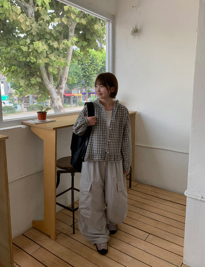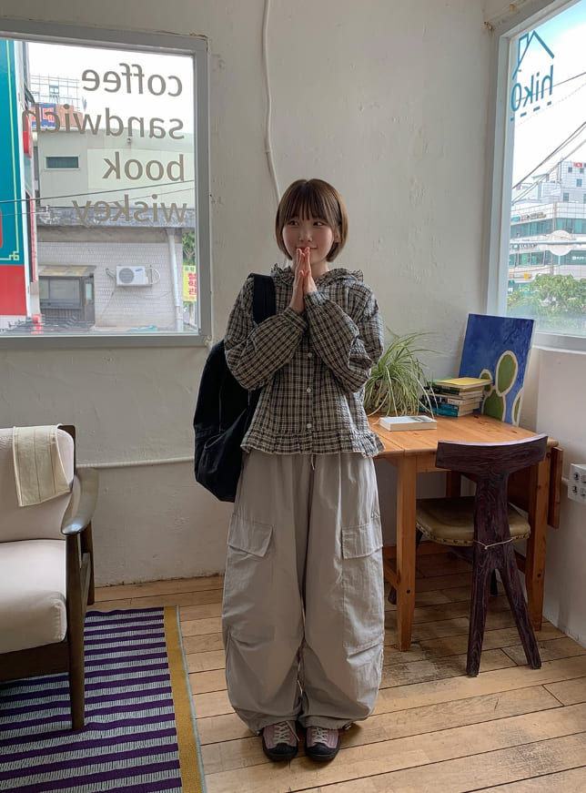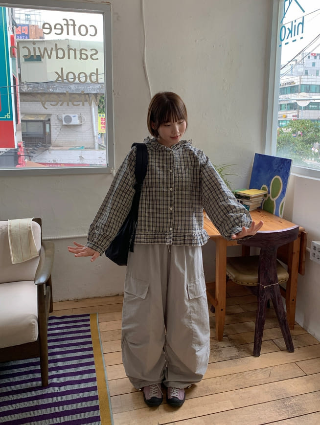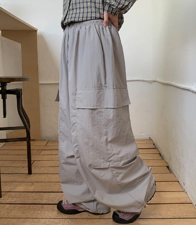 キーダンスナイロンパラシュートバンディングカーゴワイドパンツ