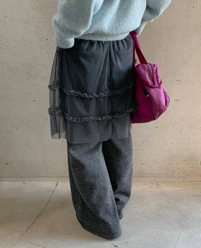 -ONE SIZE (ウエスト(ゴム)64-96 ヒップ89 股上29 股下72 もも周り57 裾周り60 総丈101)
