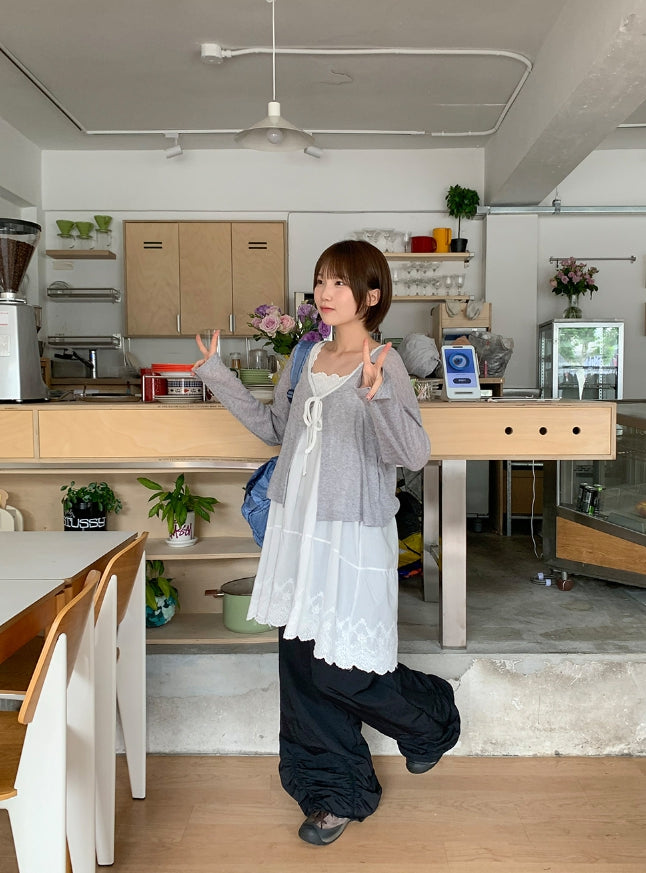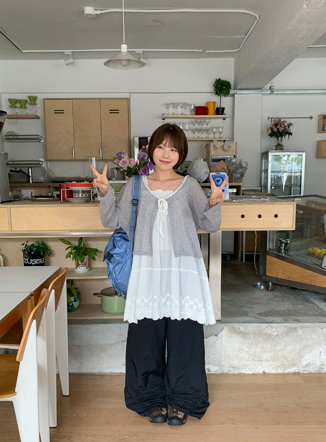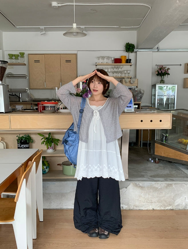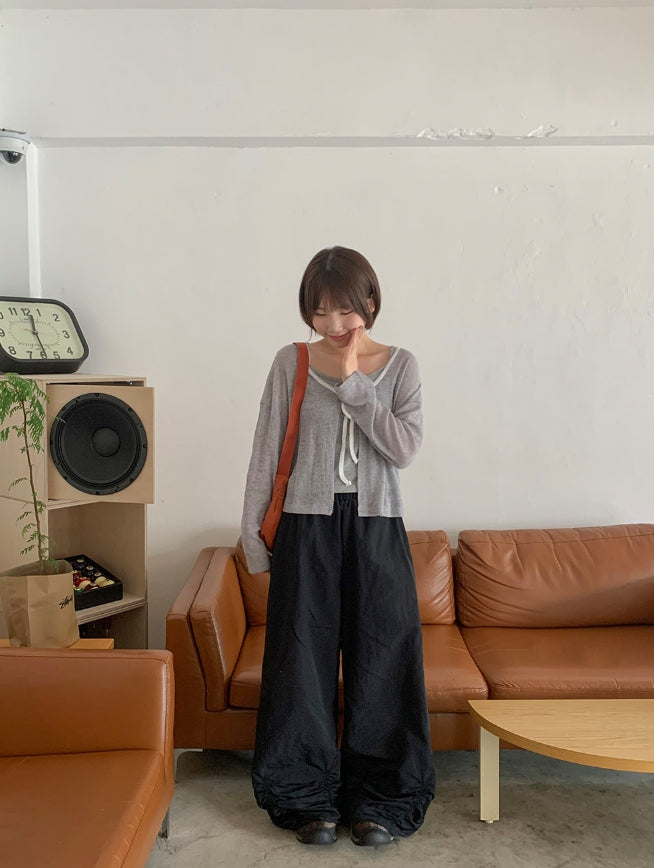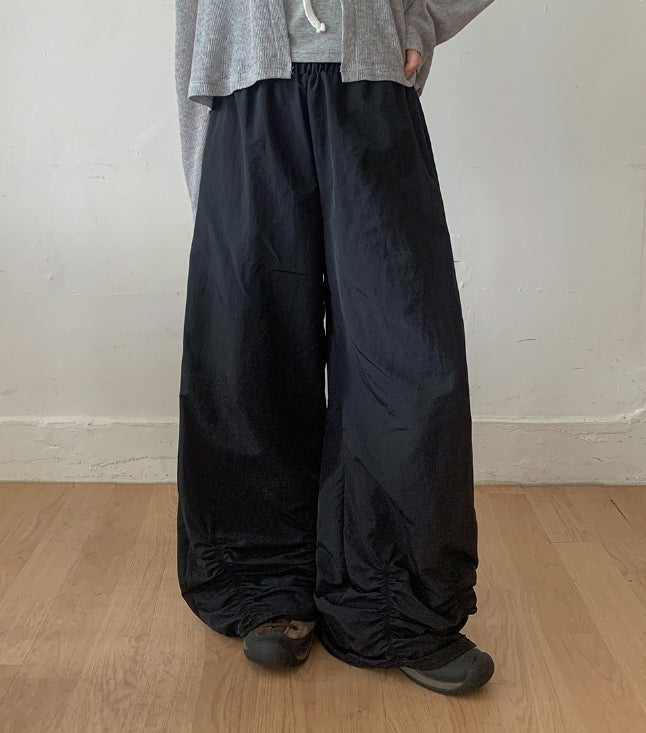 キョセスシャーリングナイロンバンディングワイドパンツ