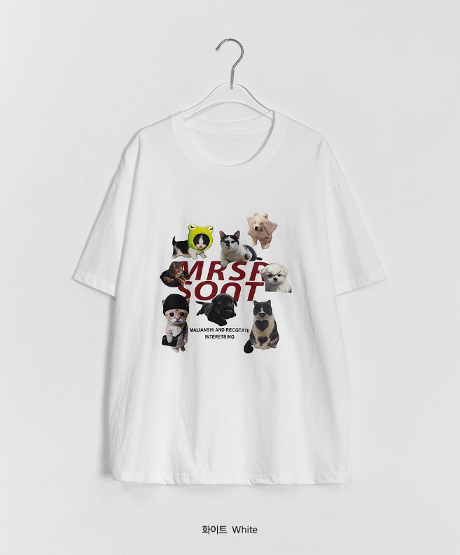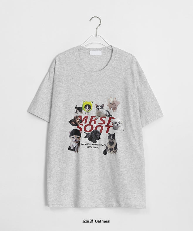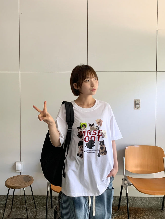 キョウスンキャットプリントオーバー半袖Tシャツ