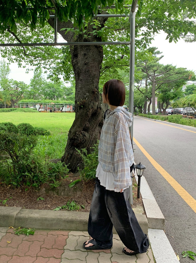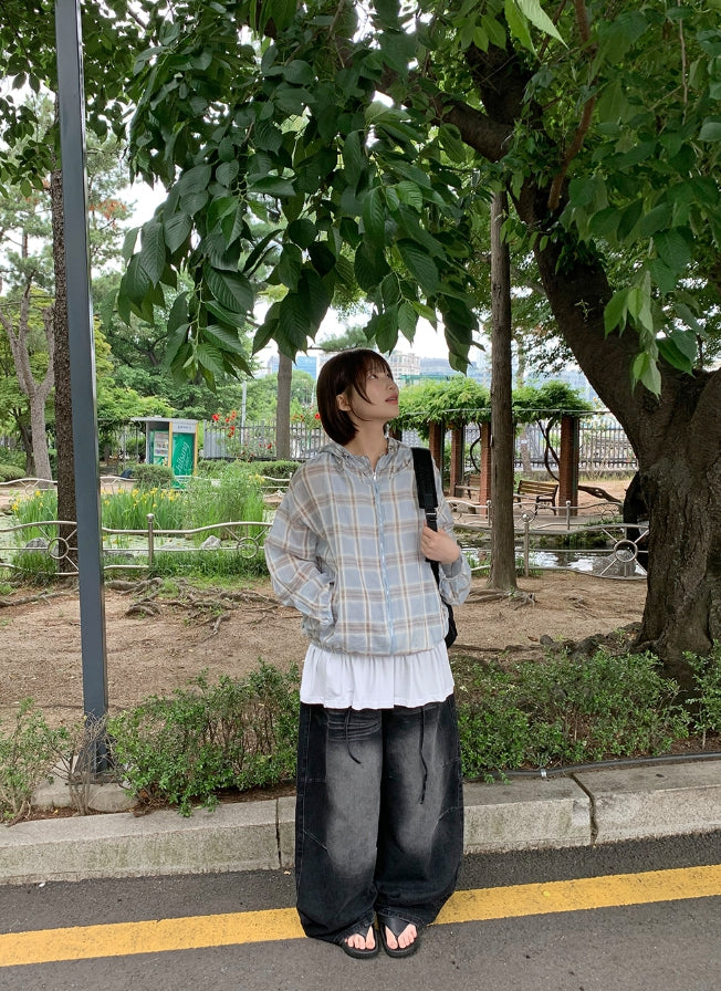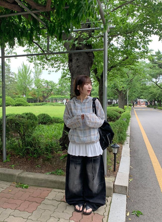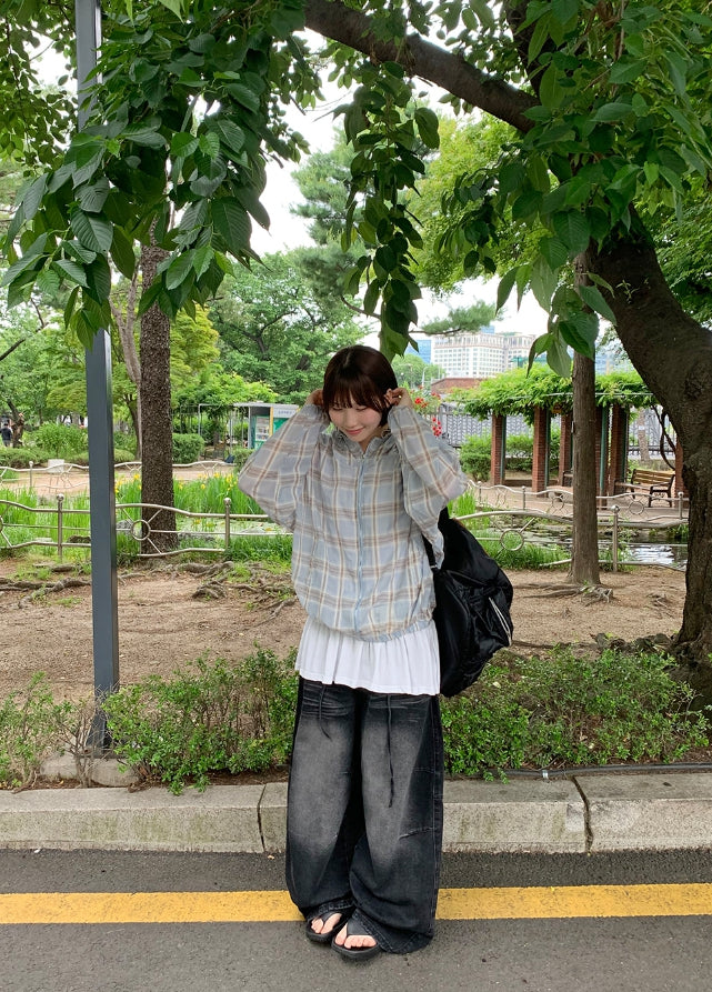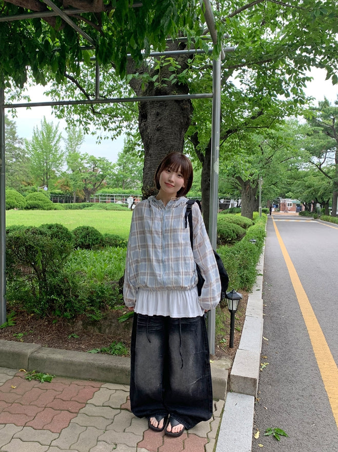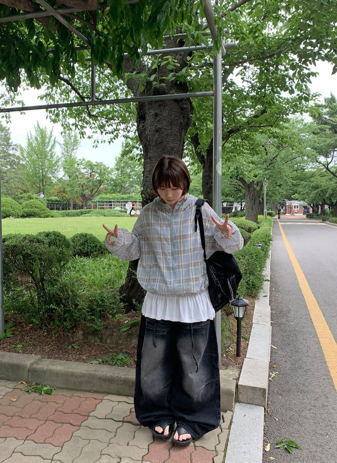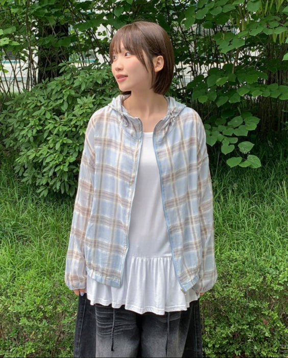 Latoli Summer Check Hooded Zip-up Wind Jumper