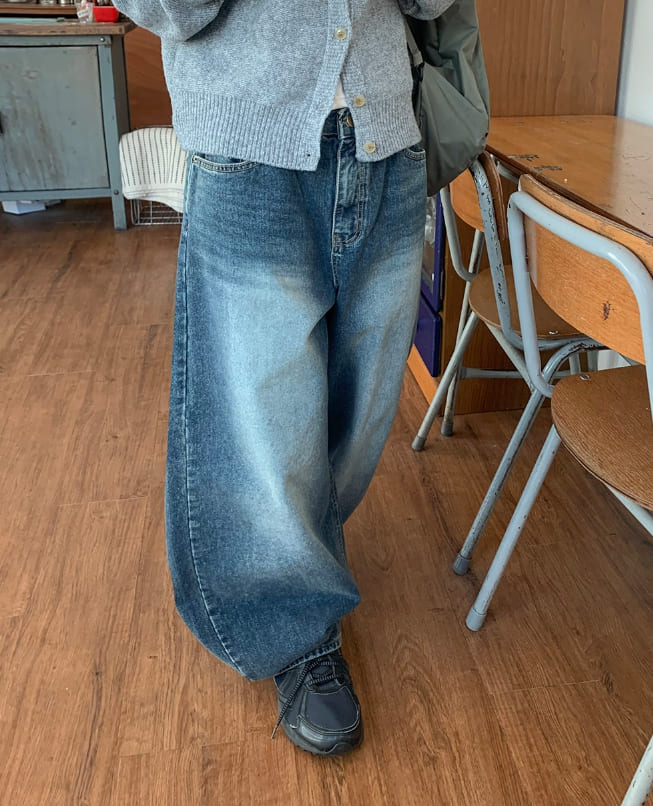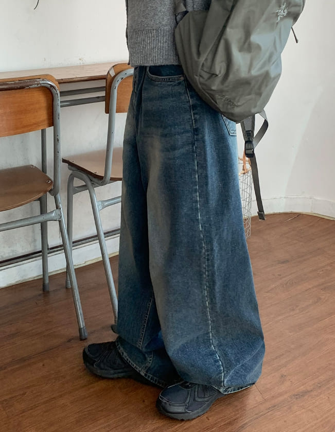 Lesokun Wide Brushed Denim Pants