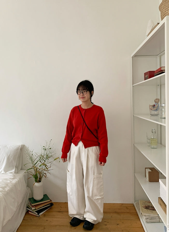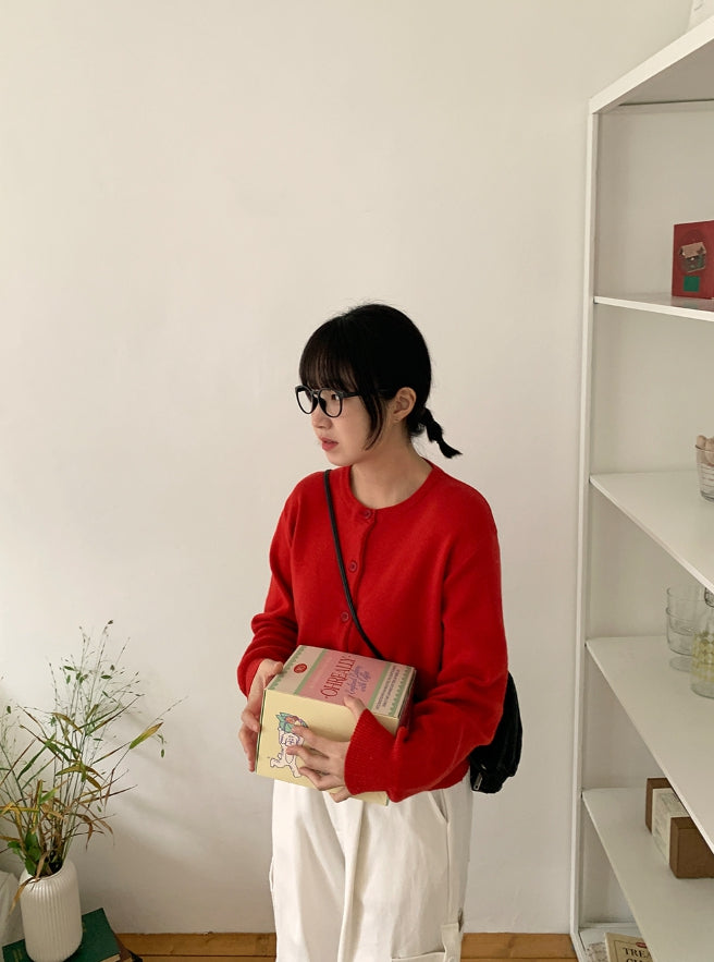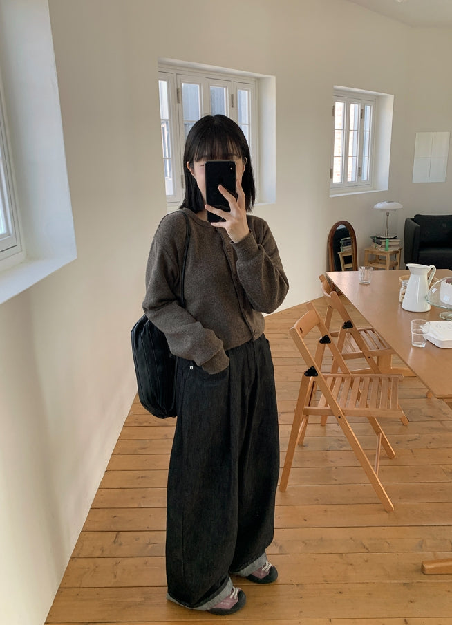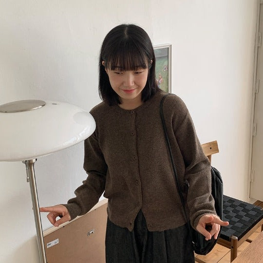 Linen round knit cardigan