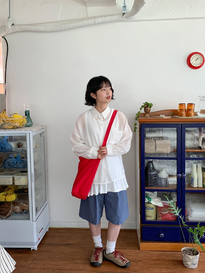 Lisons Summer Color See-through Long Sleeve Shirt