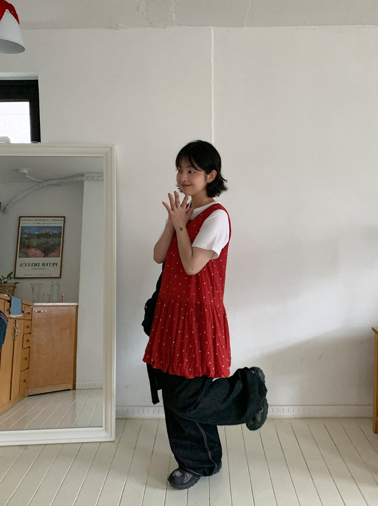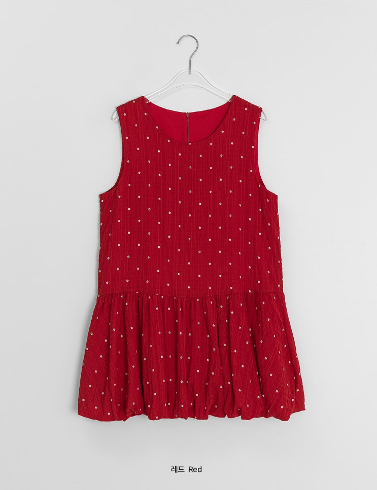 マオリレイヤードフラワーバルーンノースリーブワンピース