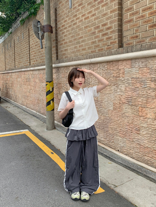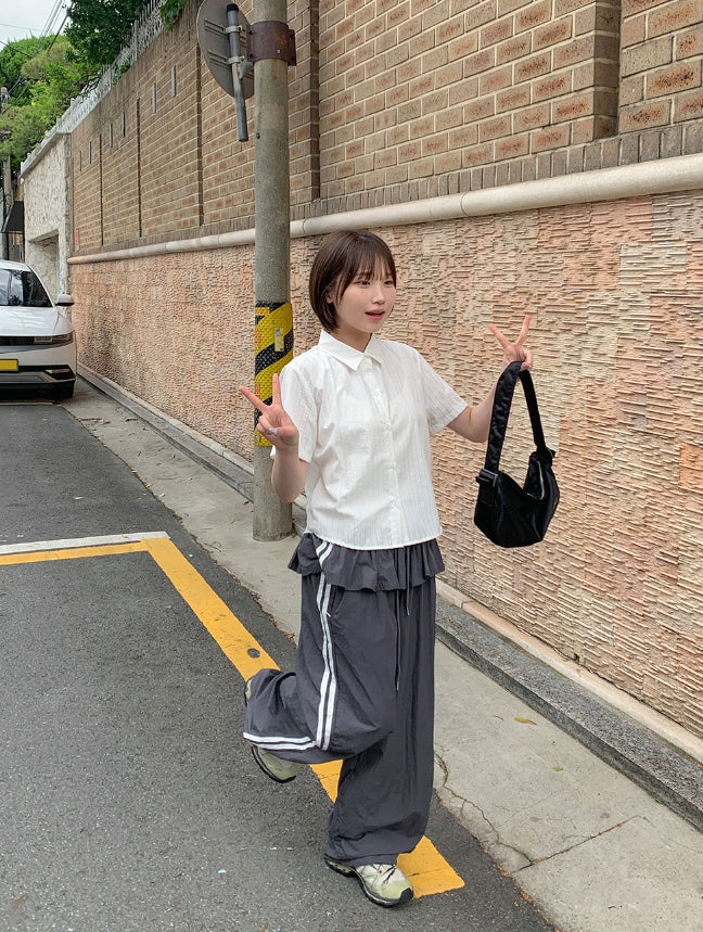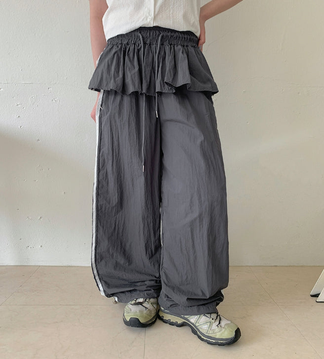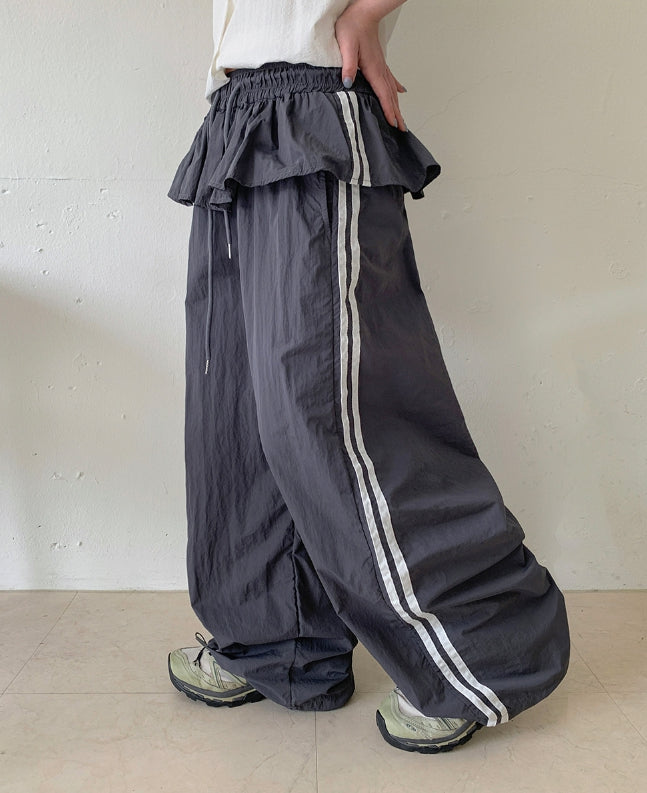 Megle Summer Track Color Matching Nylon Skirt Pants
