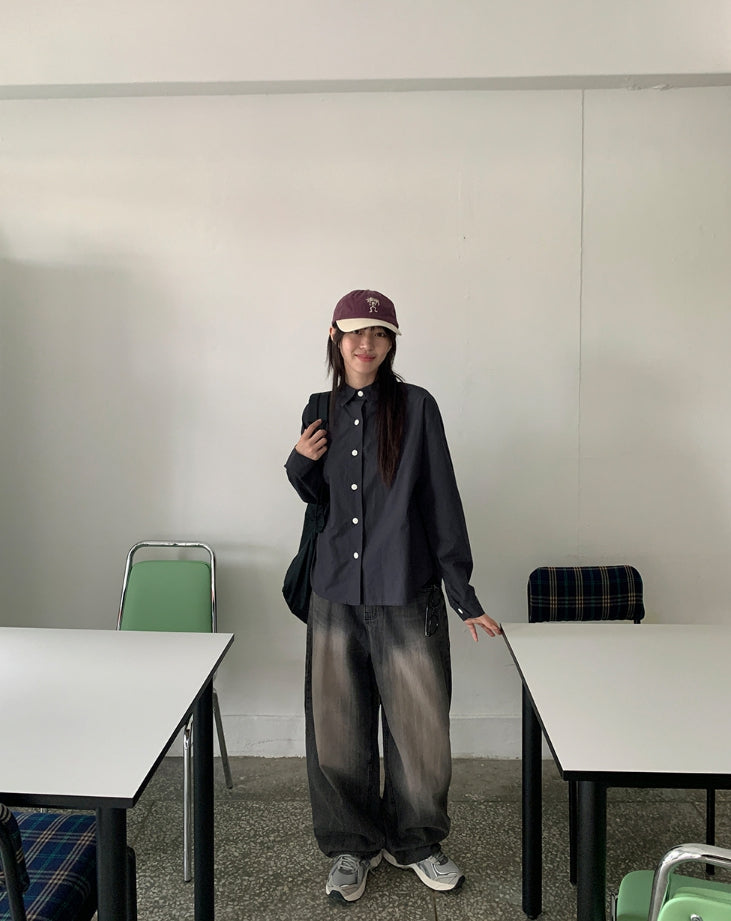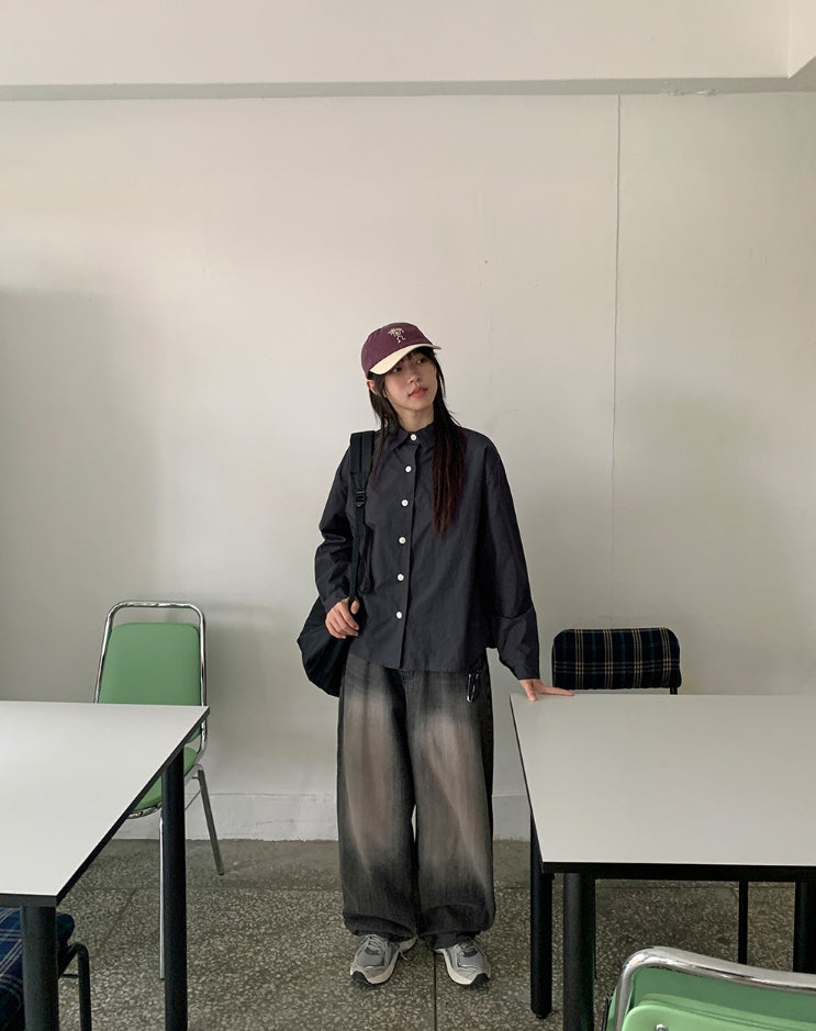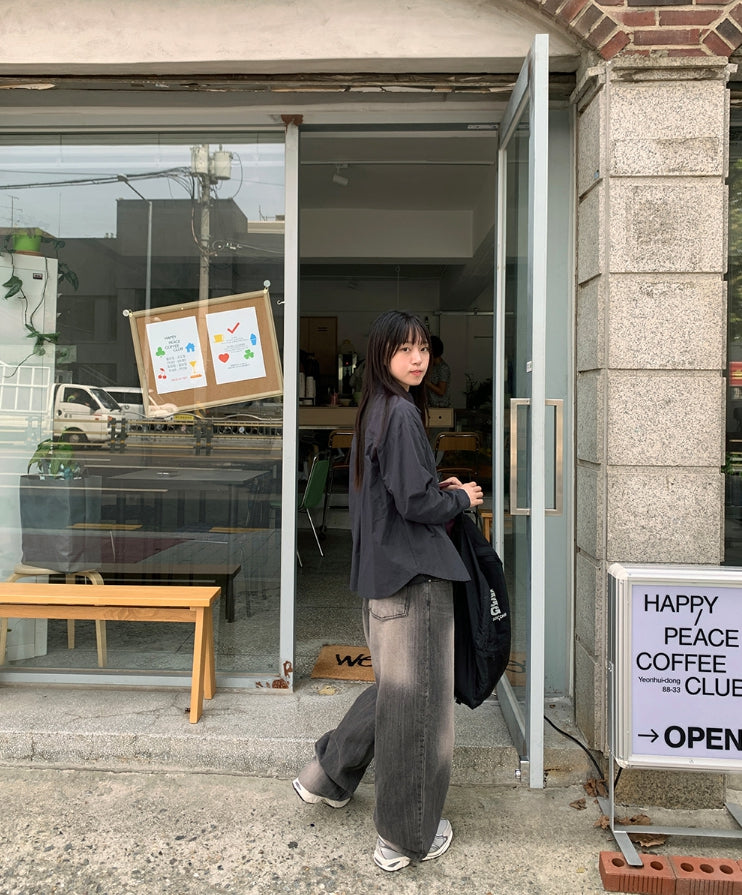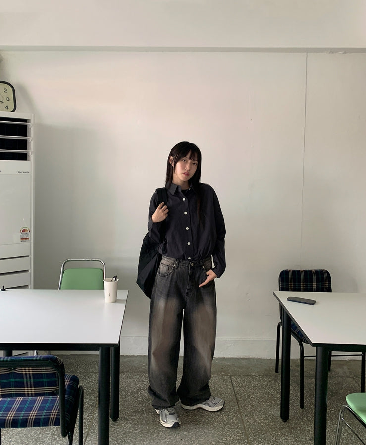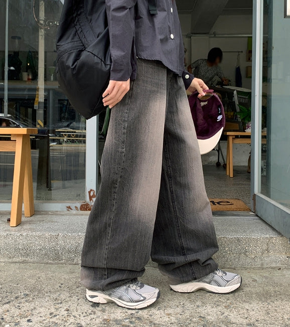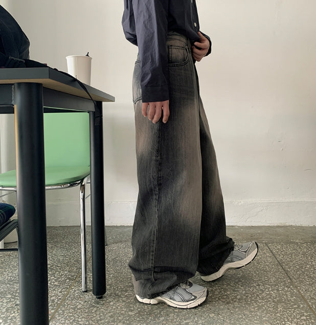 Menmid Washing Black Blue Wide Pants