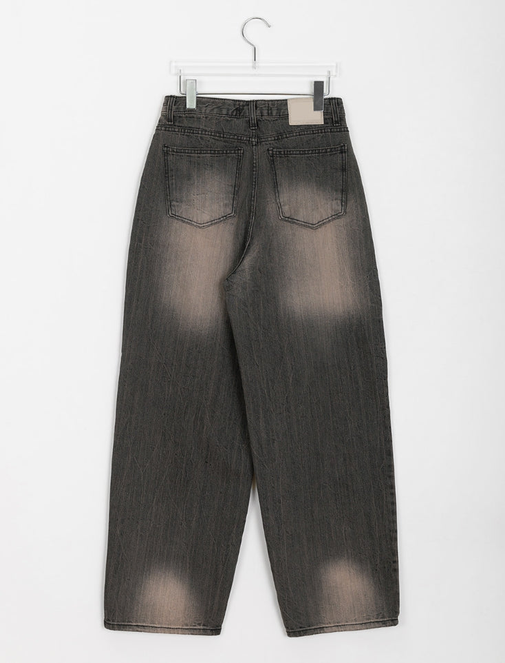 メンミッドウォッシングブラックブルーワイドパンツ