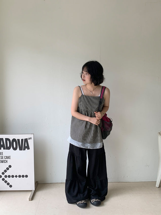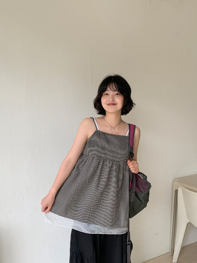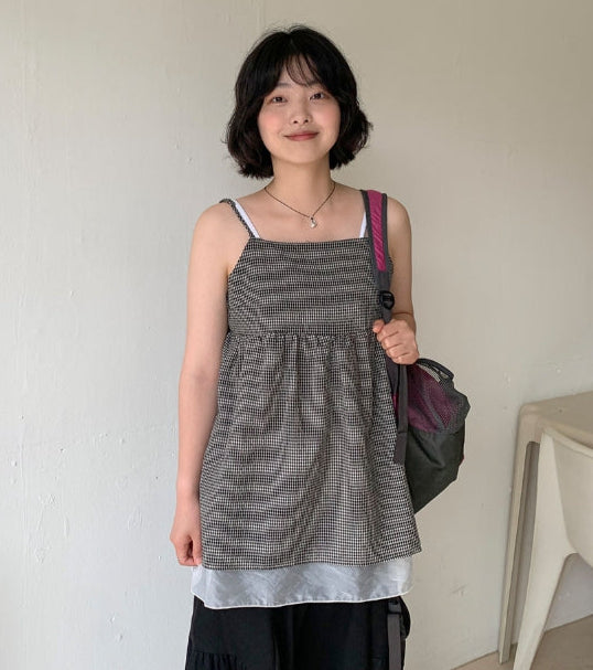 ミンテルサマーチェックレイヤードキャミソールブラウス