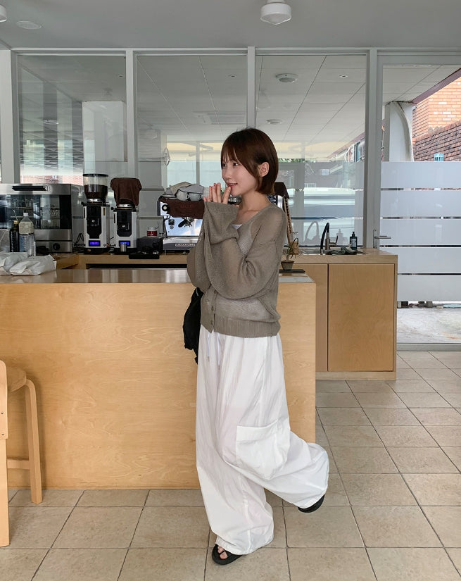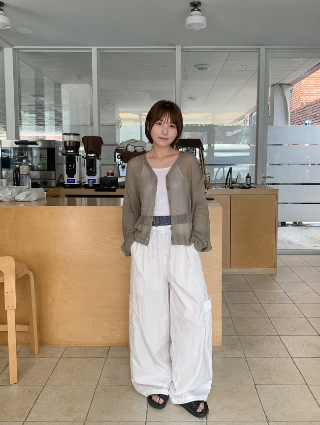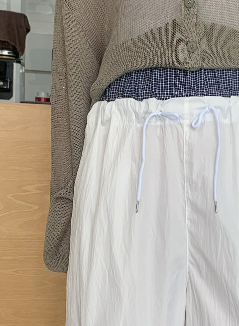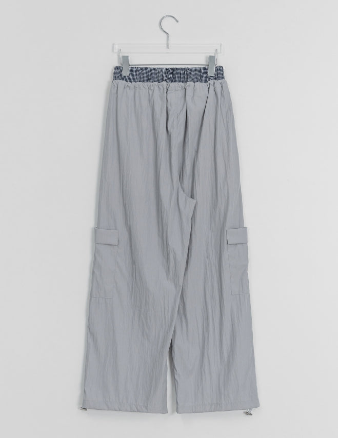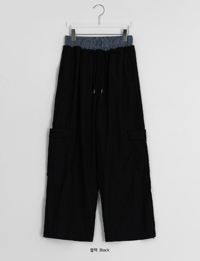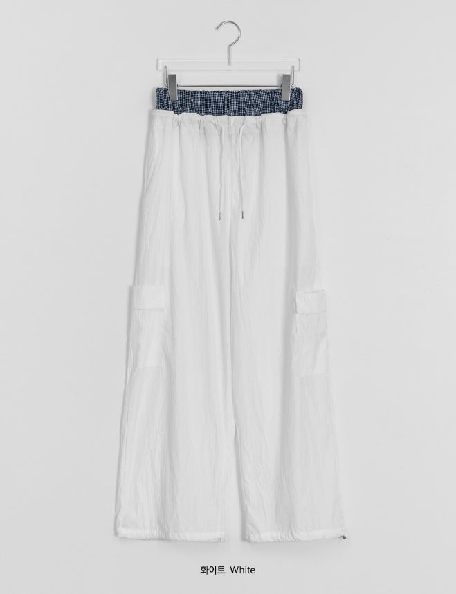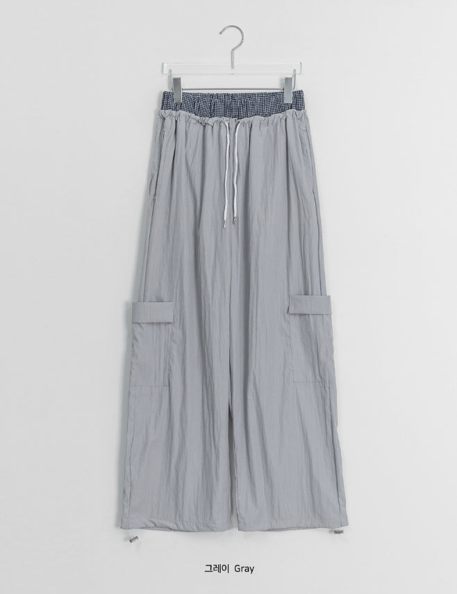 Mitu Summer Check Color Matching Cargo Wide Pants