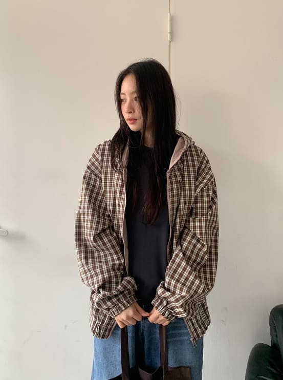 Modit Reversible Check Hood Windbreaker