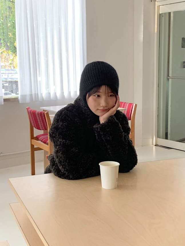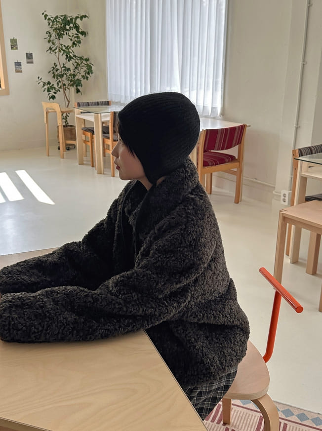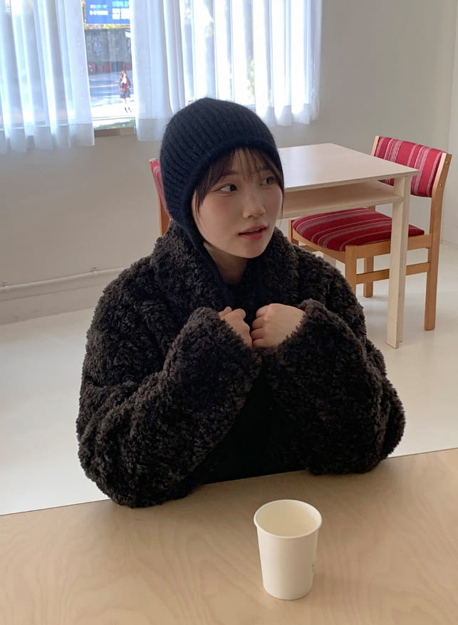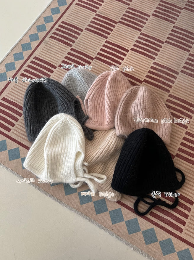 ムーンベロアンゴラストラップボンネットニットビーニー