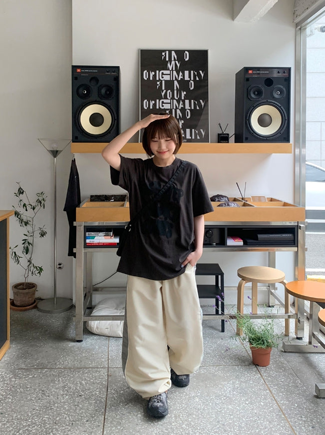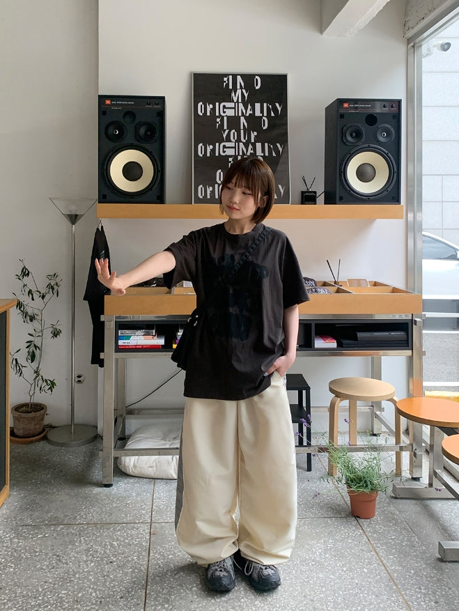 -ONE SIZE (ウエスト(ゴム)62-80 ヒップ113 股上32 股下69 もも周り74 裾周り55 総丈101)