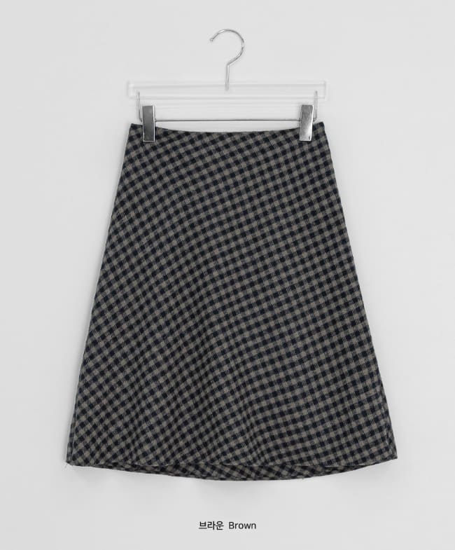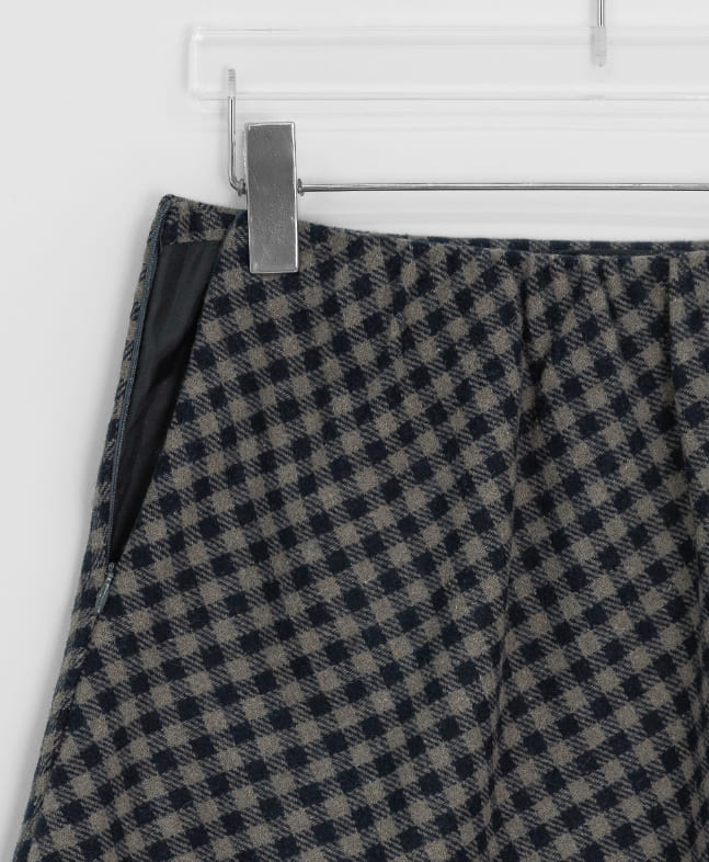 ミュードリーウールチェックバンディングミディスカート