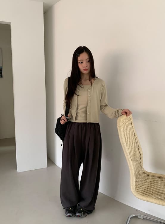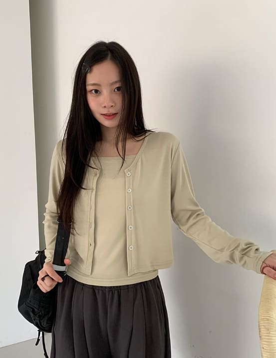 ナイゲットクロップキャミソールカーディガンセット