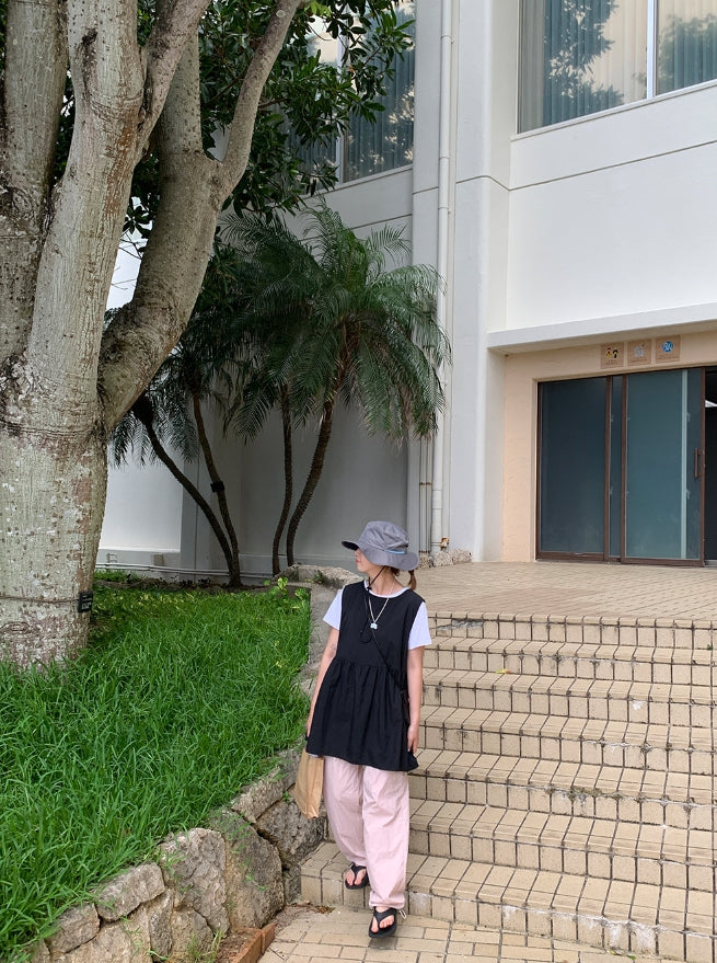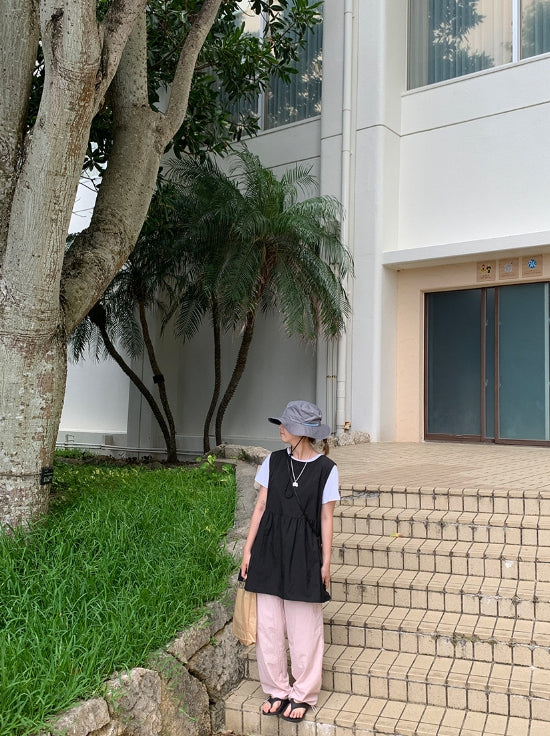 −ONE SIZE (ウエスト(ゴム)60/84 ヒップ100 股上30 股下73 もも周り62 裾周り30-40 総丈103)