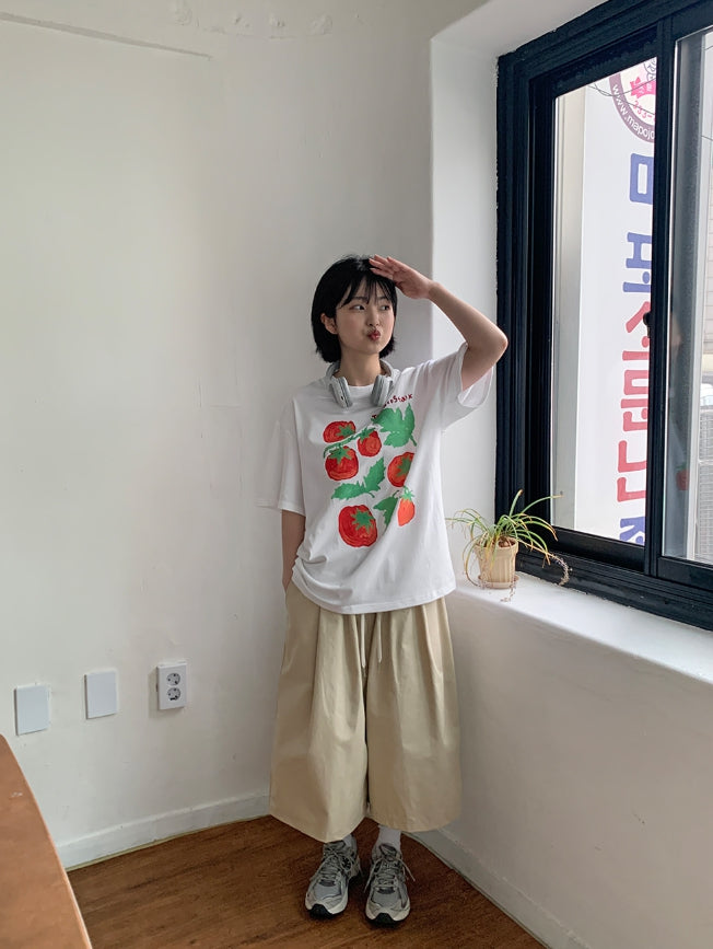 オゲントマトプリンティングオーバー半袖Tシャツ