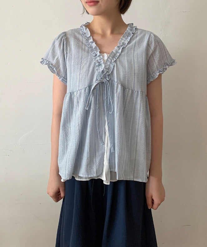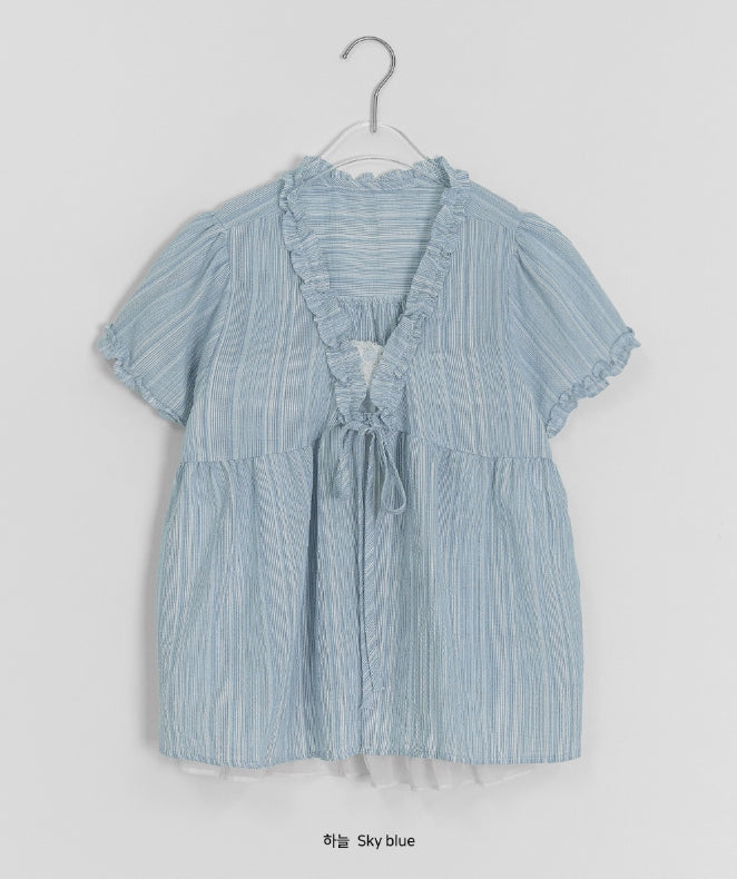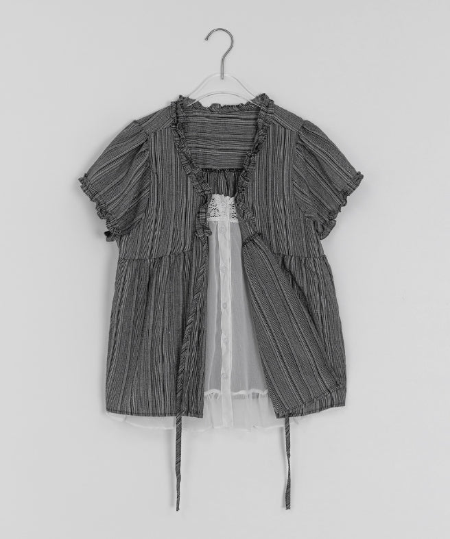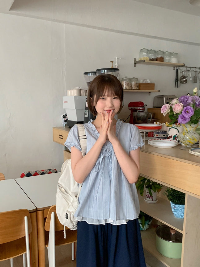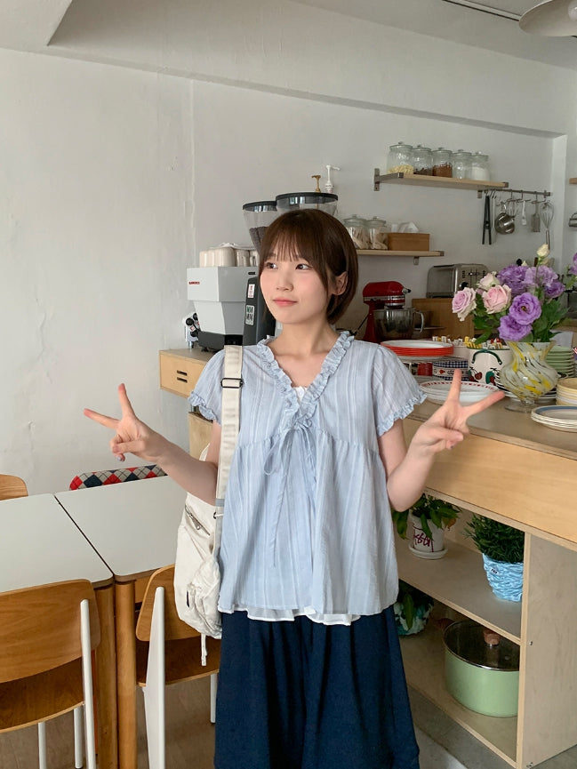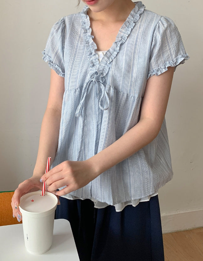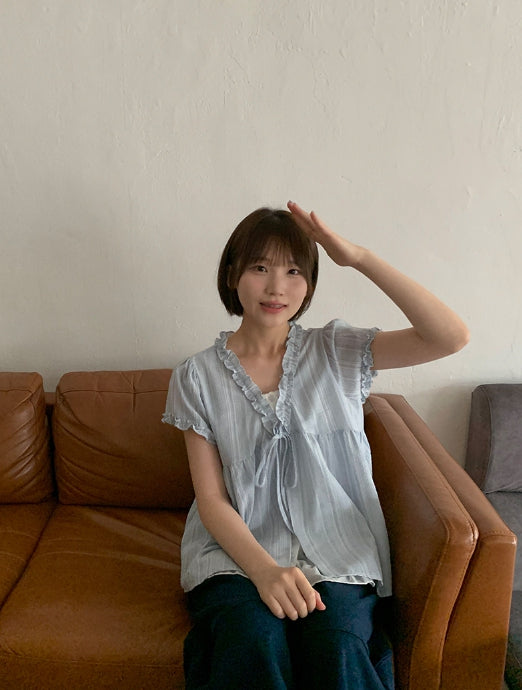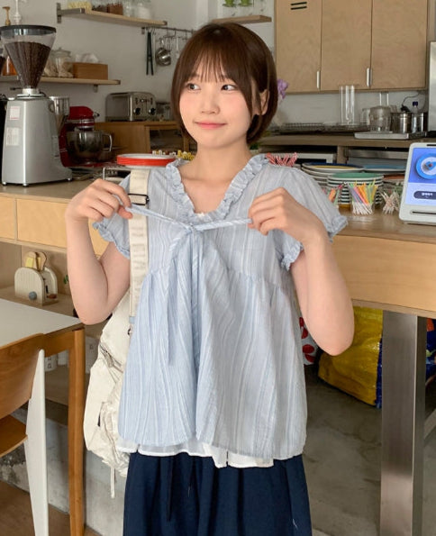 Olbe Layered Ribbon Short Sleeve Blouse