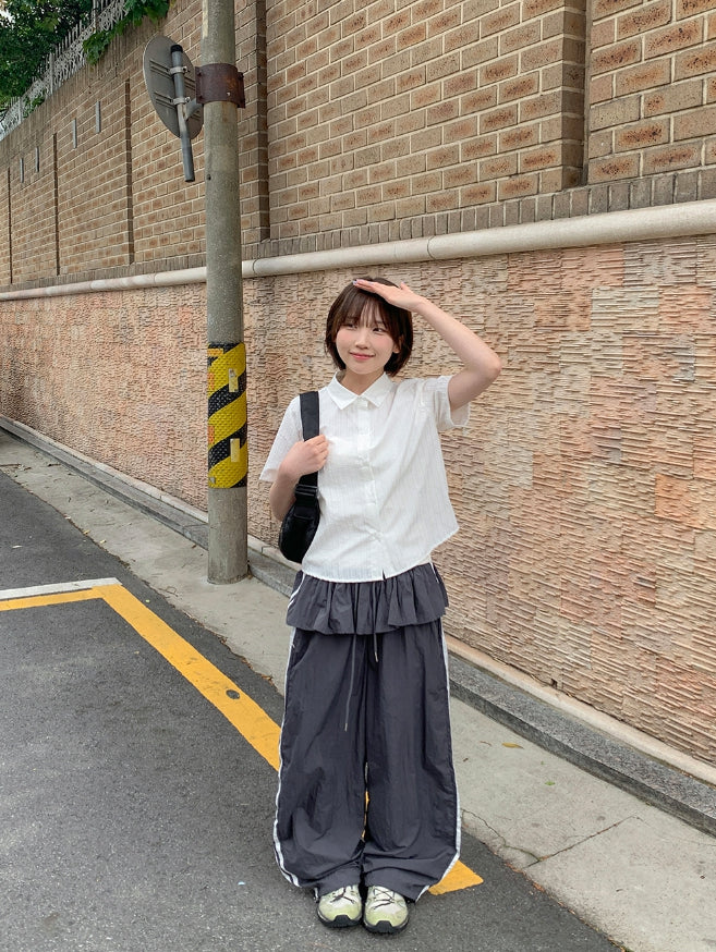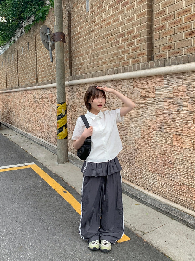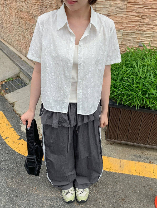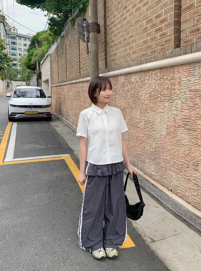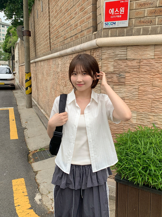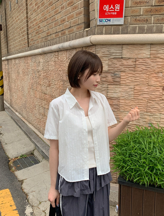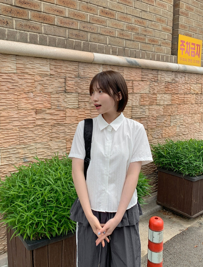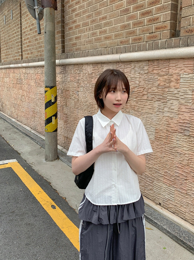 Peng Summer Seersucker Stripe Short Sleeve Shirt