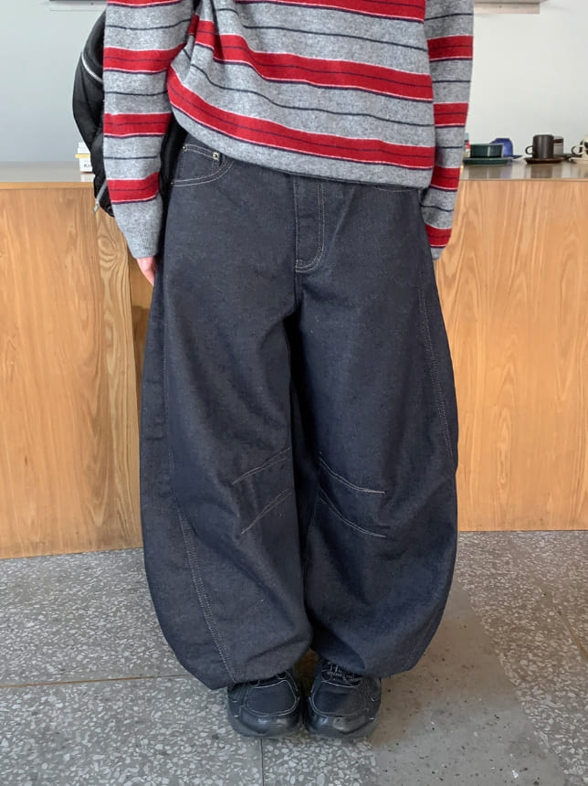 プミュカーブド生デニムバルーンワイドパンツ