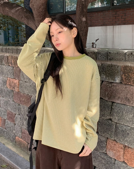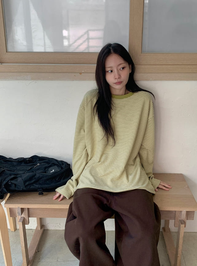 Qsen Peach Fuzz Stripe Over Long Sleeve Tee