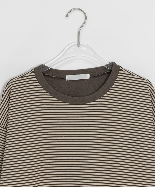 キュセンピーチ起毛ボーダーオーバー長袖Tシャツ