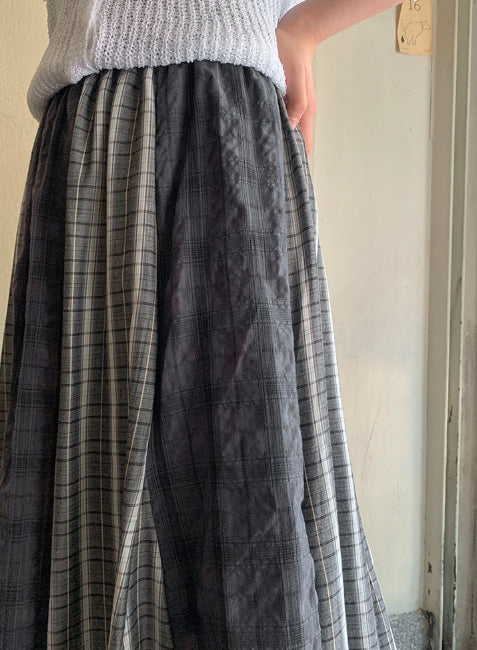レヒュスビンテージシシアサッカーチェックバンディングロングスカート