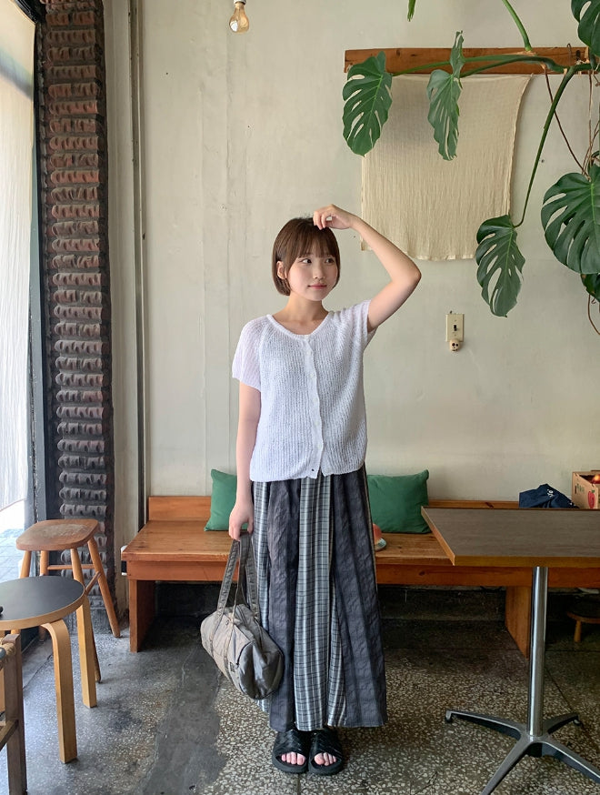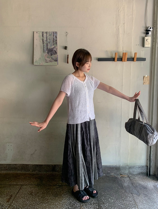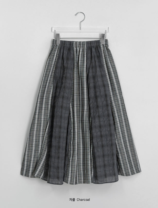 Rehues Vintage Seersucker Check Banding Long Skirt