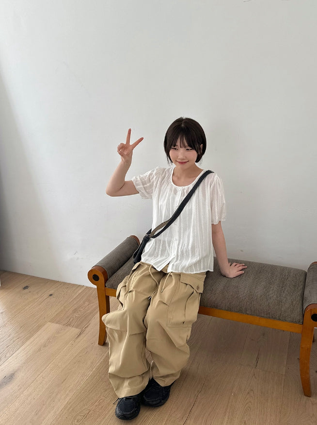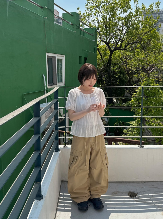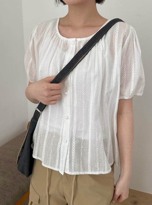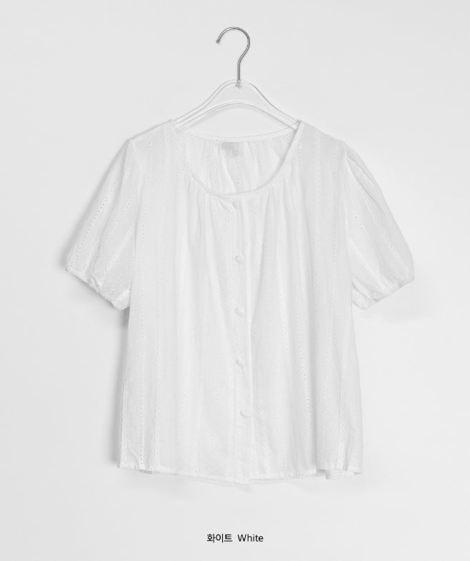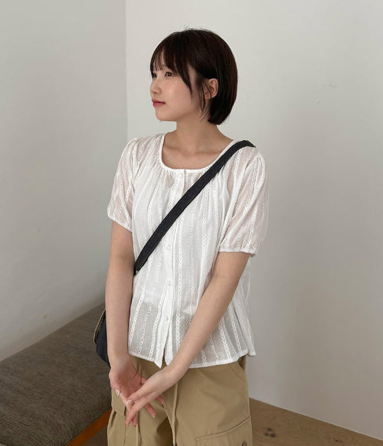 Salid Punching Round Short Sleeve Blouse
