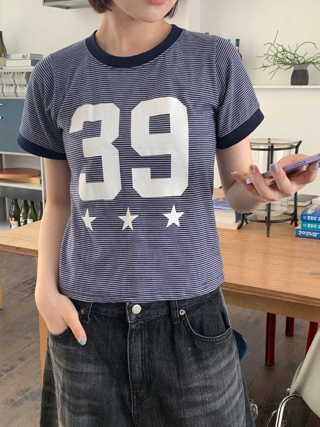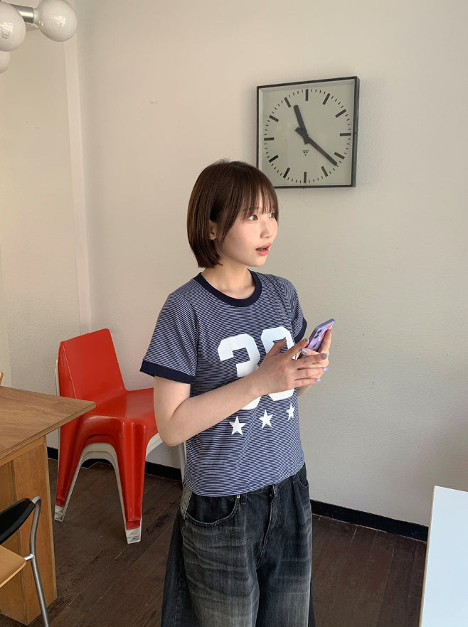 Sibeo Stripe Star Ringer Short Sleeve Tee