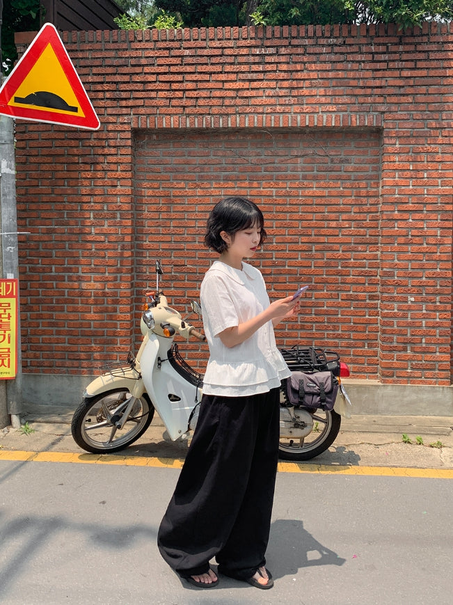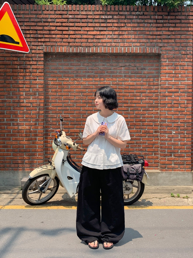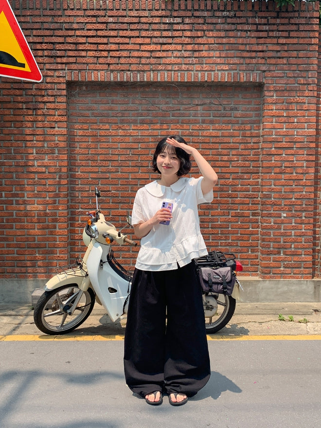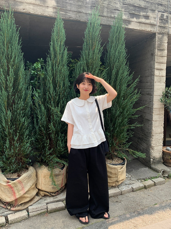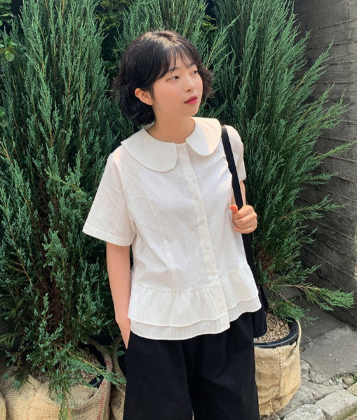 Silke Round Collar Frill Blouse