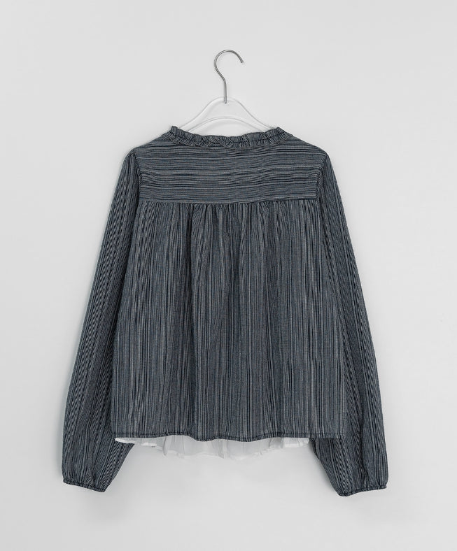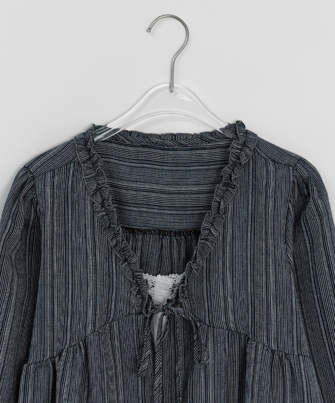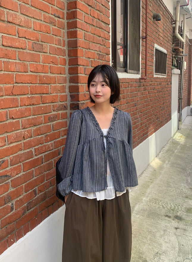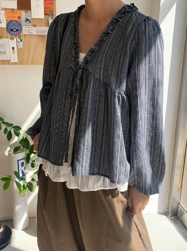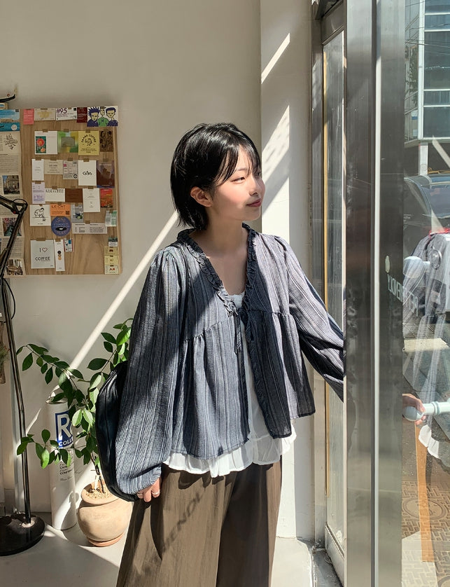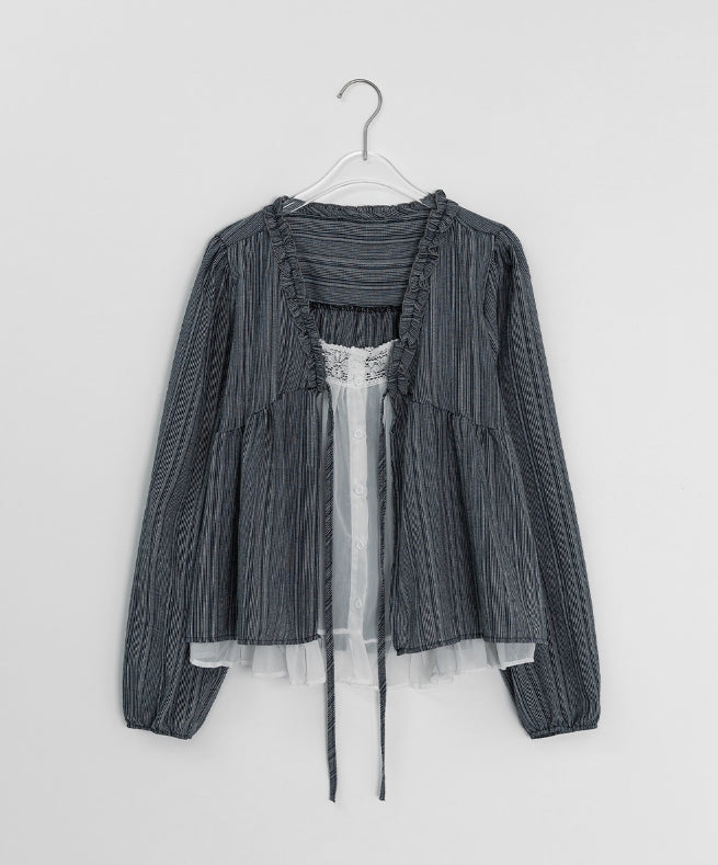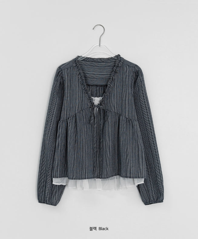 Slow-in Stripe Frill Ribbon Layered Blouse