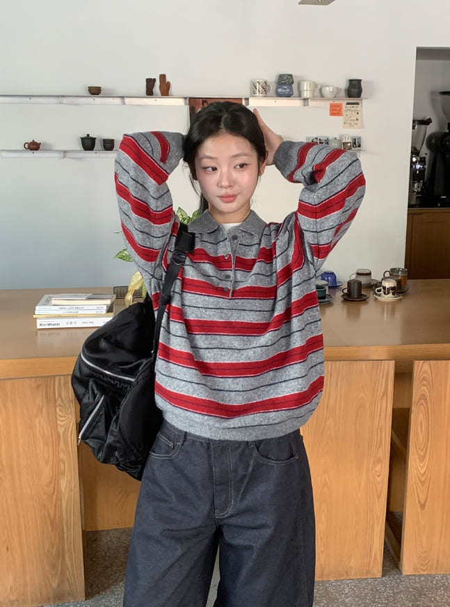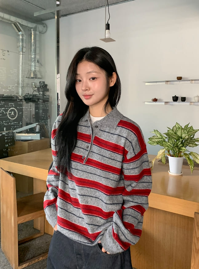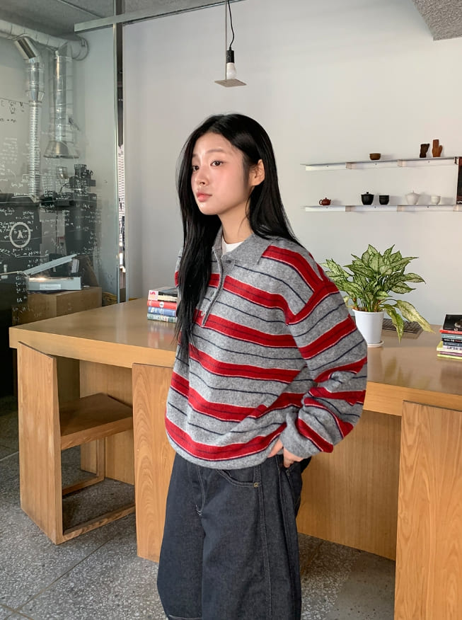 Sosel Wool Stripe Collar Knit